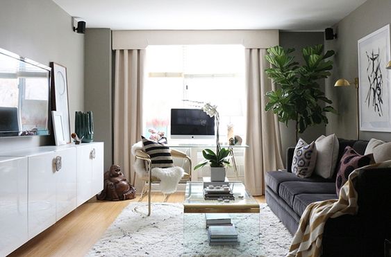 Není pravda, že tmavé odstíny pokazí harmonii interiéru. Právě naopak. Stačí, když budete myslet o krok dopředu a využijete pár optických triků. Dbát musíte na kombinace s doplňky, barvami stěn nebo podlahou. Černá barva sedací soupravy totiž přirozeně interiér zmenšuje, světla ho naopak zvětšují. Ideální je rozbít tmavou kompozici světlou barvou, podobně, jako například na obrázku. Je to klasický malý obývací pokoj, který ale má i přes černou sedačku a množství doplňků dostatek světla a prostoru.