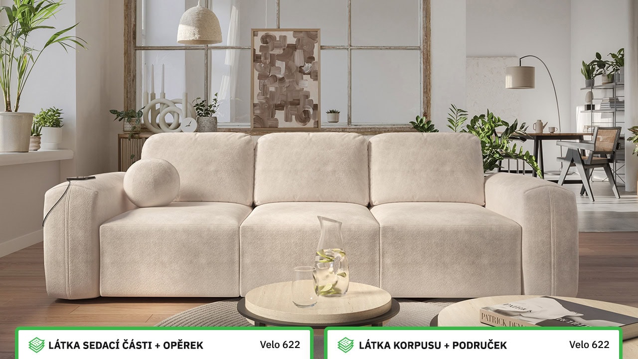 Hledáte pohovku, která bude definicí pohodlí už na první pohled? S pohovkou BERGO rozhodně neuděláte chybu. Má šikovné rozměry i do menšího obývacího pokoje – to jí však neubírá na stylu a komfortu. Má hladký povrch bez švů, díky čemuž působí luxusně čistě a zároveň měkce. Disponuje rozkládacím mechanismem, takže budete mít kde uložit návštěvu. Pohodlně se usaďte, nechte telefon nabíjet díky zabudované nabíjecí stanici a užívejte si relax plnými doušky. Pohovku vám potáhneme libovolným potahem z naší nabídky.