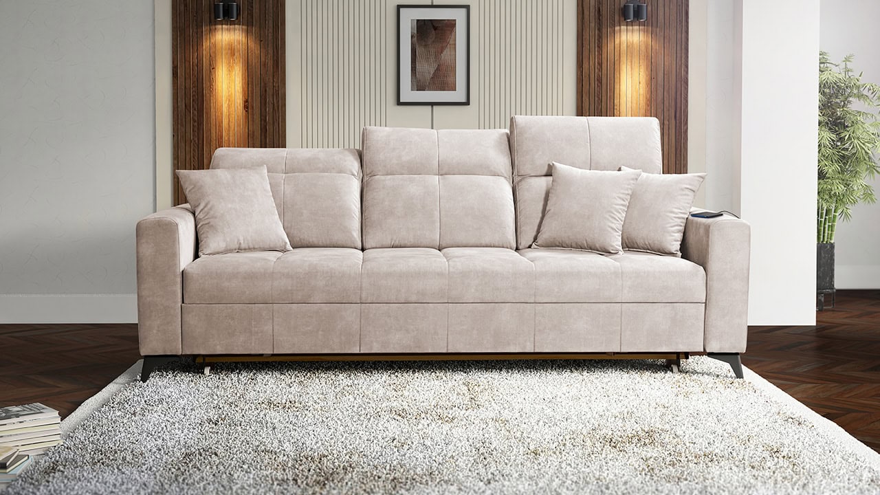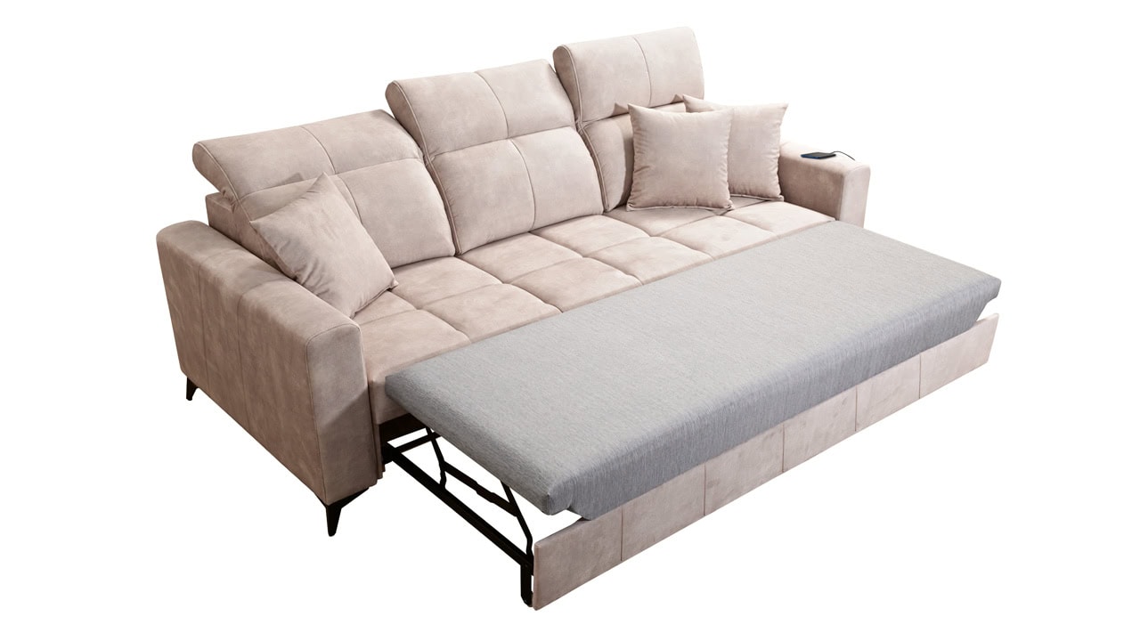 Hledáte pohovku s kompaktní velikostí a elegantním designem? Pak se vám rozhodně zalíbí naše pohovka INESS. Ztělesňuje styl a pohodlí, které z ní udělají královnu i toho nejmodernějšího obývacího pokoje. Je rozkládací, takže se na ní pohodlně vyspí vaše rodina nebo přátelé. Navíc disponuje také polohovatelnými opěrkami hlavy a zabudovanou USB nabíjecí stanicí. Vyberte si některý z potahových materiálů v naší nabídce a dopřejte si krásnou a pohodlnou pohovku na večerní relax či posezení s blízkými.