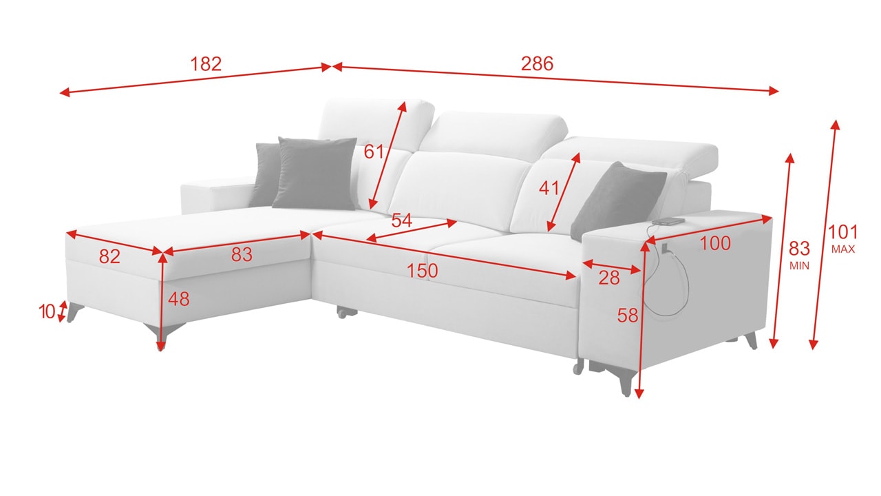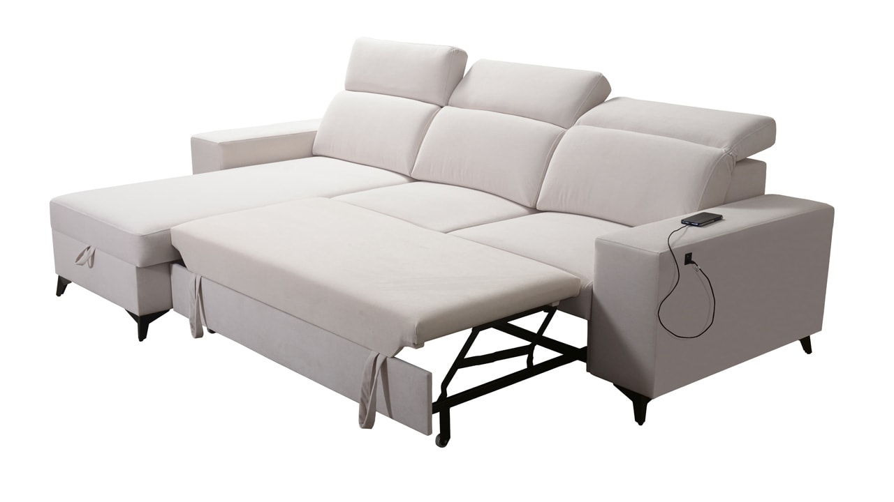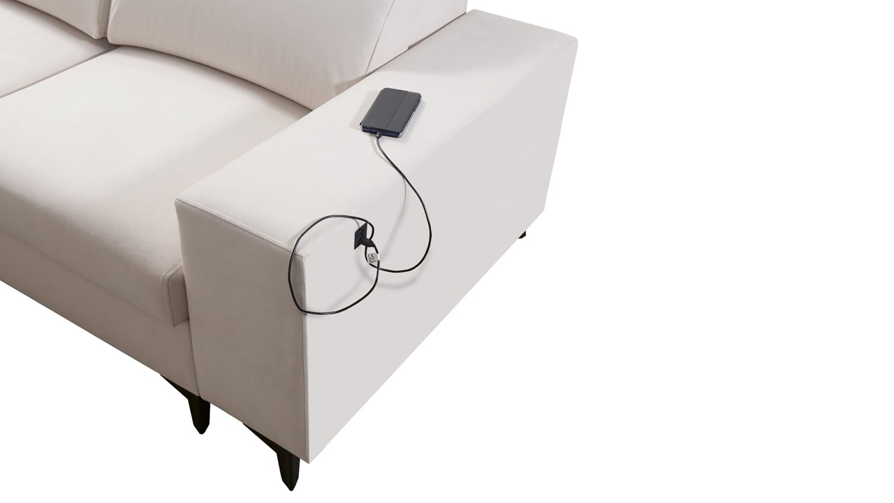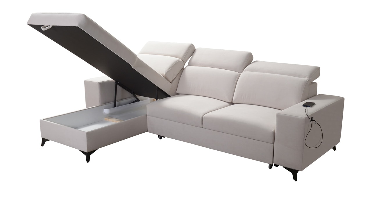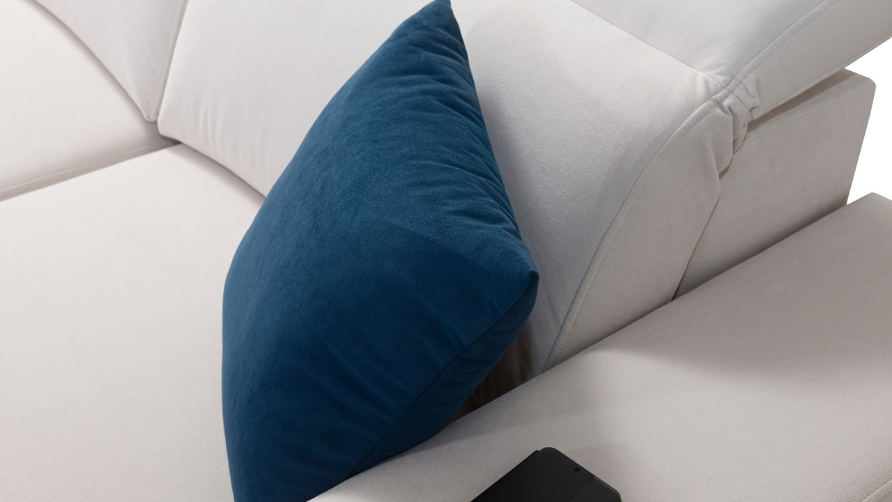 Ideální rohová pohovka pro odpočinek a lenošení. Má polohovatelné opěrky hlavy, úložný prostor a vestavěné rozkládací lůžko. Výhodou je také zabudovaný USB port pro nabíjení, díky čemuž můžete mít mobil nebo tablet vždy po ruce. Sedačku vám nabízíme s možností vlastního výběru potahového materiálu, aby ulahodila vašemu oku a zapadla do stylu vaší domácnosti. Ozdobné polštářky máte od nás grátis.