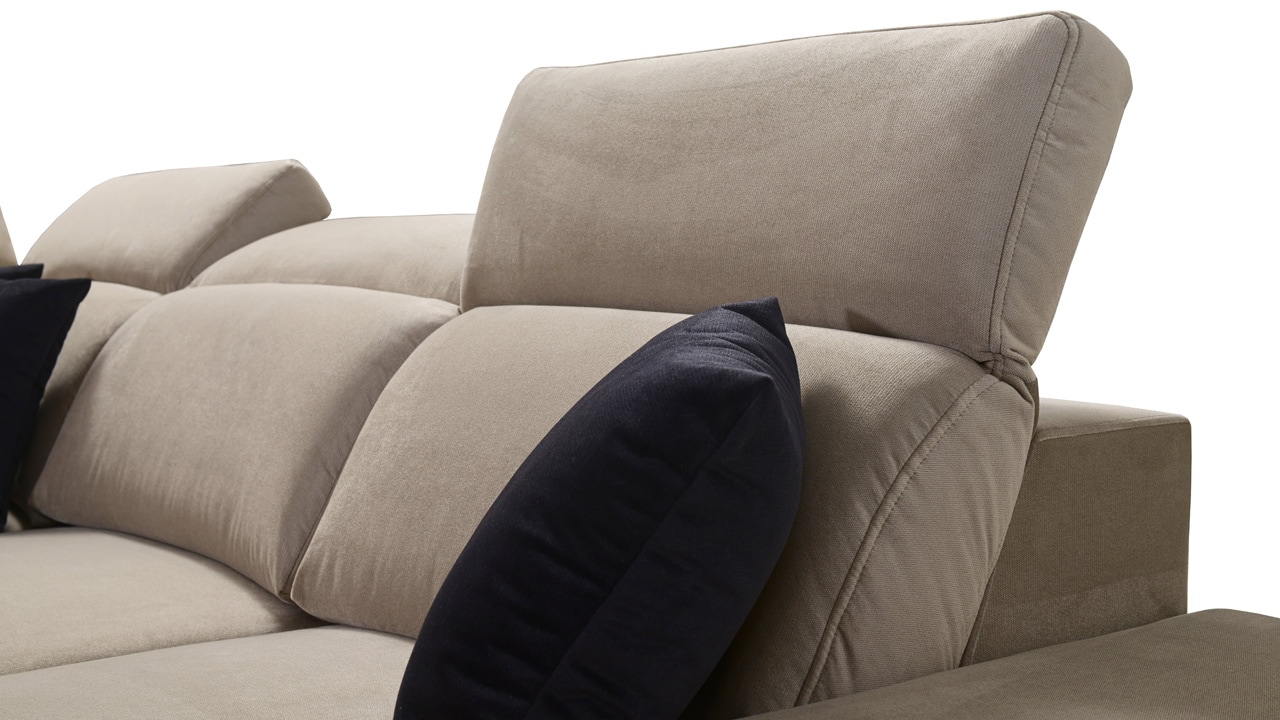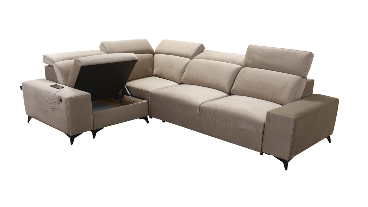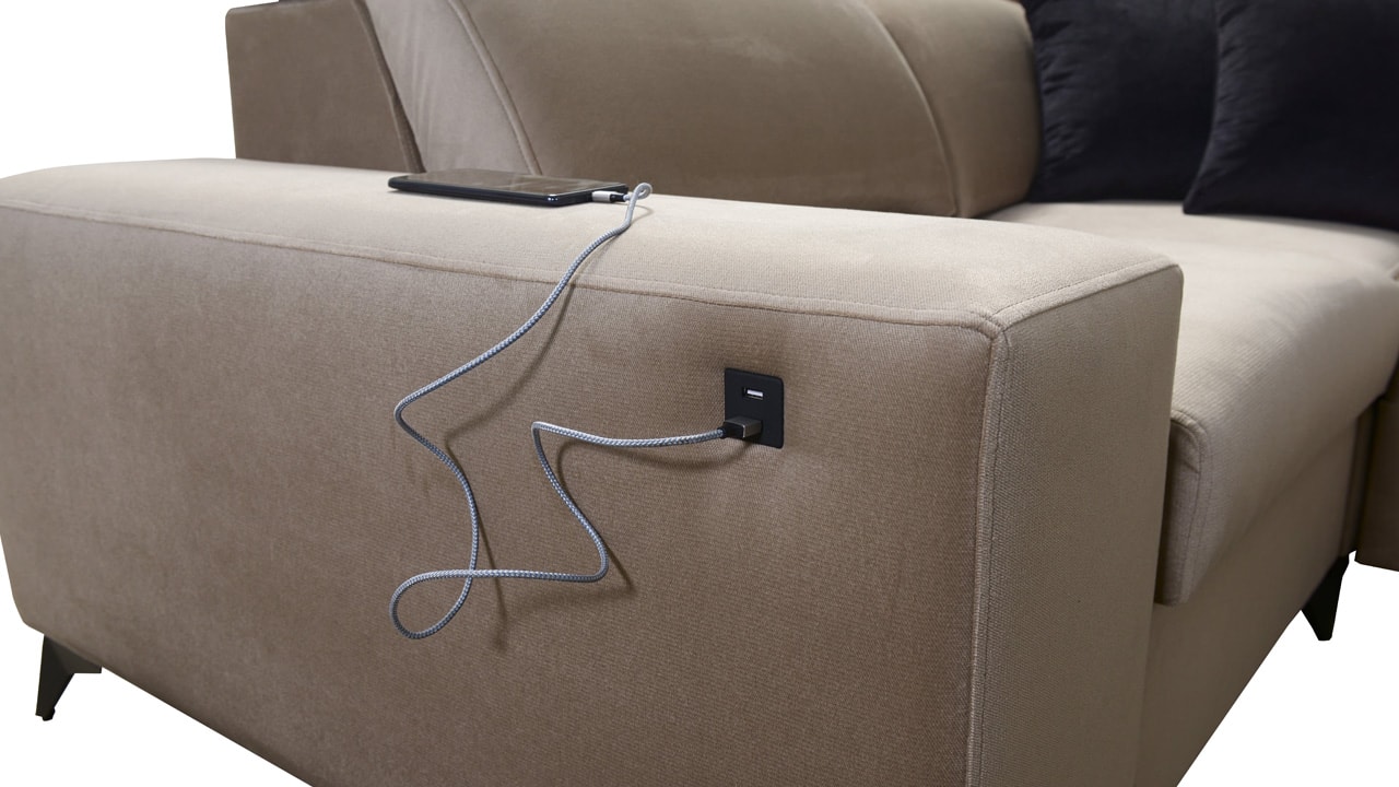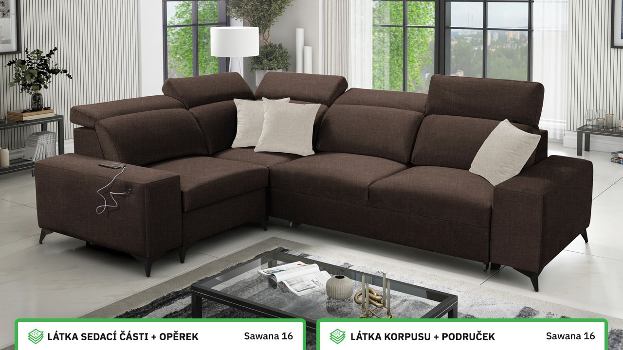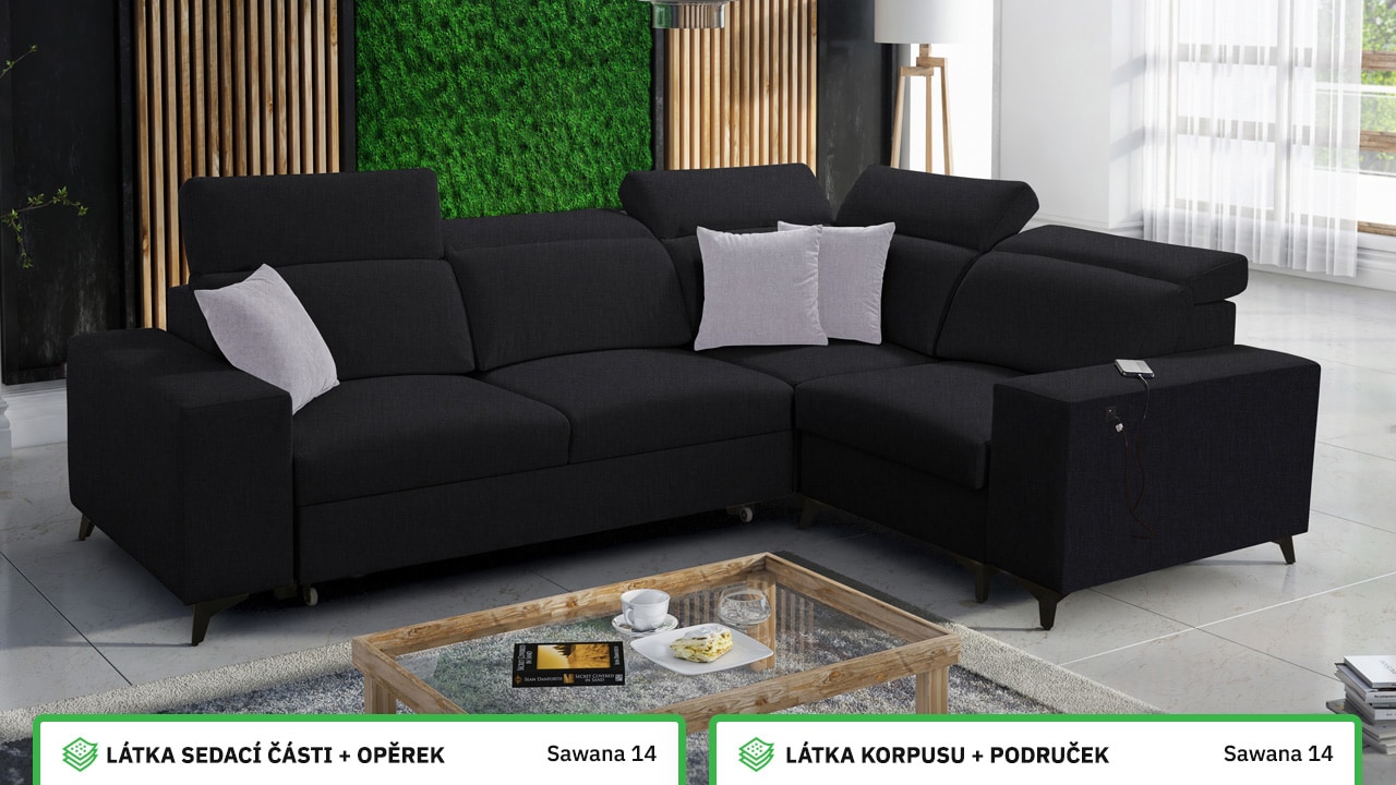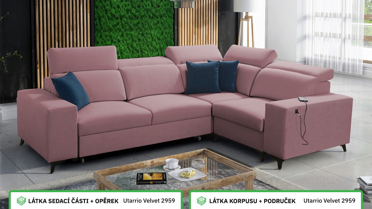 Univerzální rohová sedačka s praktickými rozměry, vhodnými i do menších bytů nebo kancelářských prostorů. Má polohovatelné opěrky hlavy, úložný prostor, možnost rozkládání a také vestavěný USB post pro dobíjení mobilu i tabletu. Sedačku si můžete nechat vyrobit v kterémkoli potahovém materiálu z naší nabídky. Dekorační polštářky ve vámi vybraném vzoru od nás dostanete k sedačce zdarma.