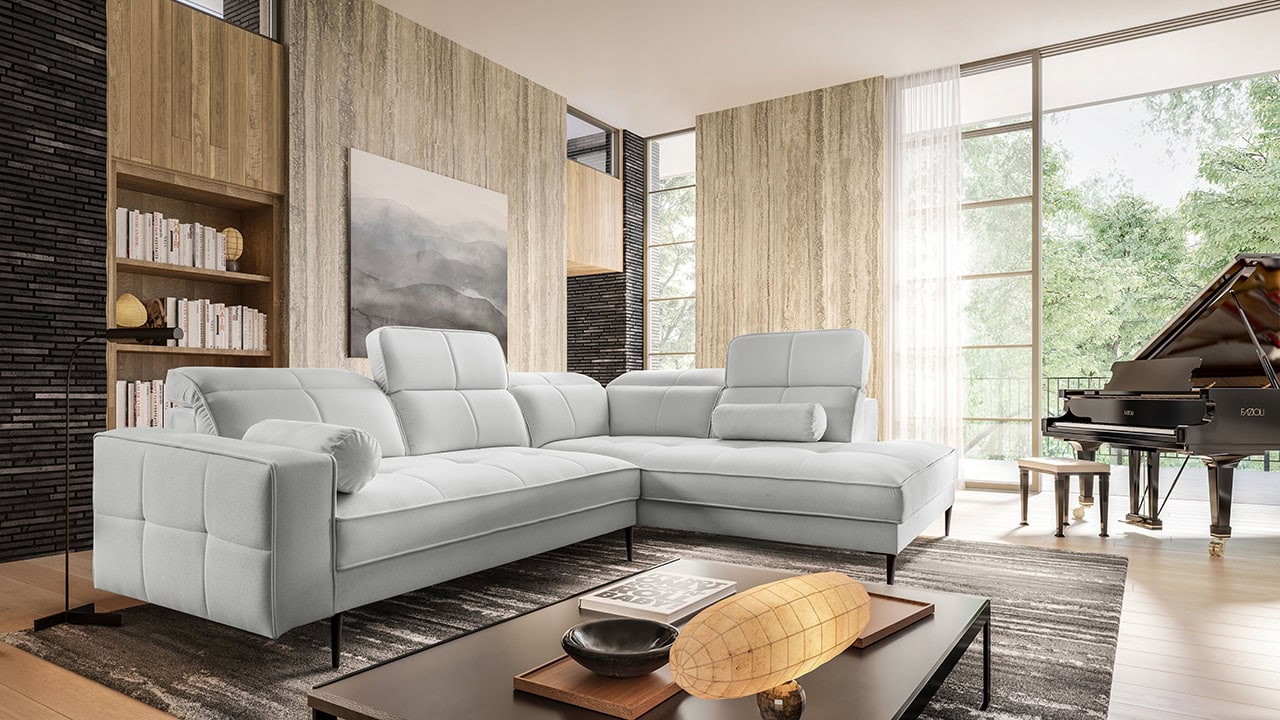 Hledáte moderní kousek do vašeho obývacího pokoje? Rohová sedačka Dino je kombinací elegance, moderního designu a komfortu. Vysoké 15 cm nožičky opticky zvětší prostor a zajímavé prošívání sedačky upoutá pozornost hned při vstupu do místnosti. Pohodlně se usaďte, nastavte si opěrku hlavy podle svých preferencí a vychutnejte si příjemný večer s přáteli, rodinou nebo u oblíbeného filmu či knihy. Díky praktickým rozměrům skvěle zapadne i do menších obývacích pokojů. Sedačku vám potáhneme libovolným materiálem z naší nabídky.