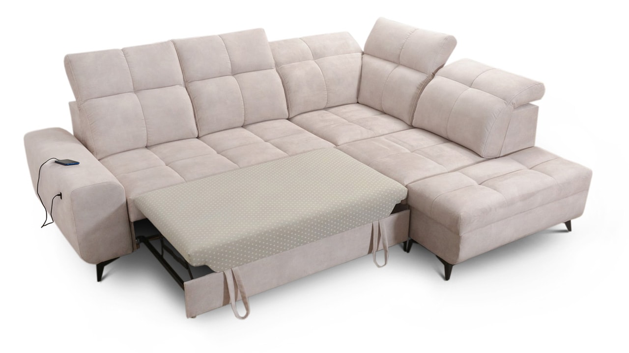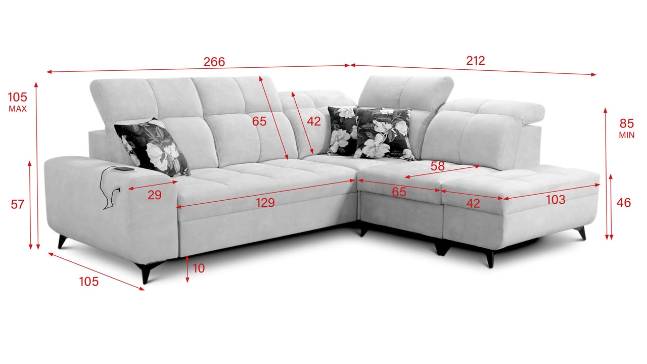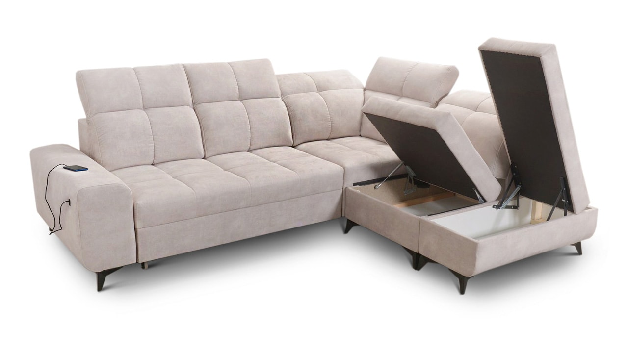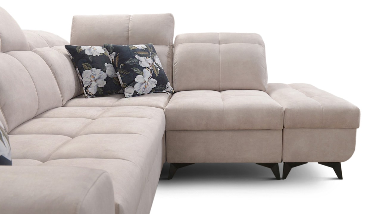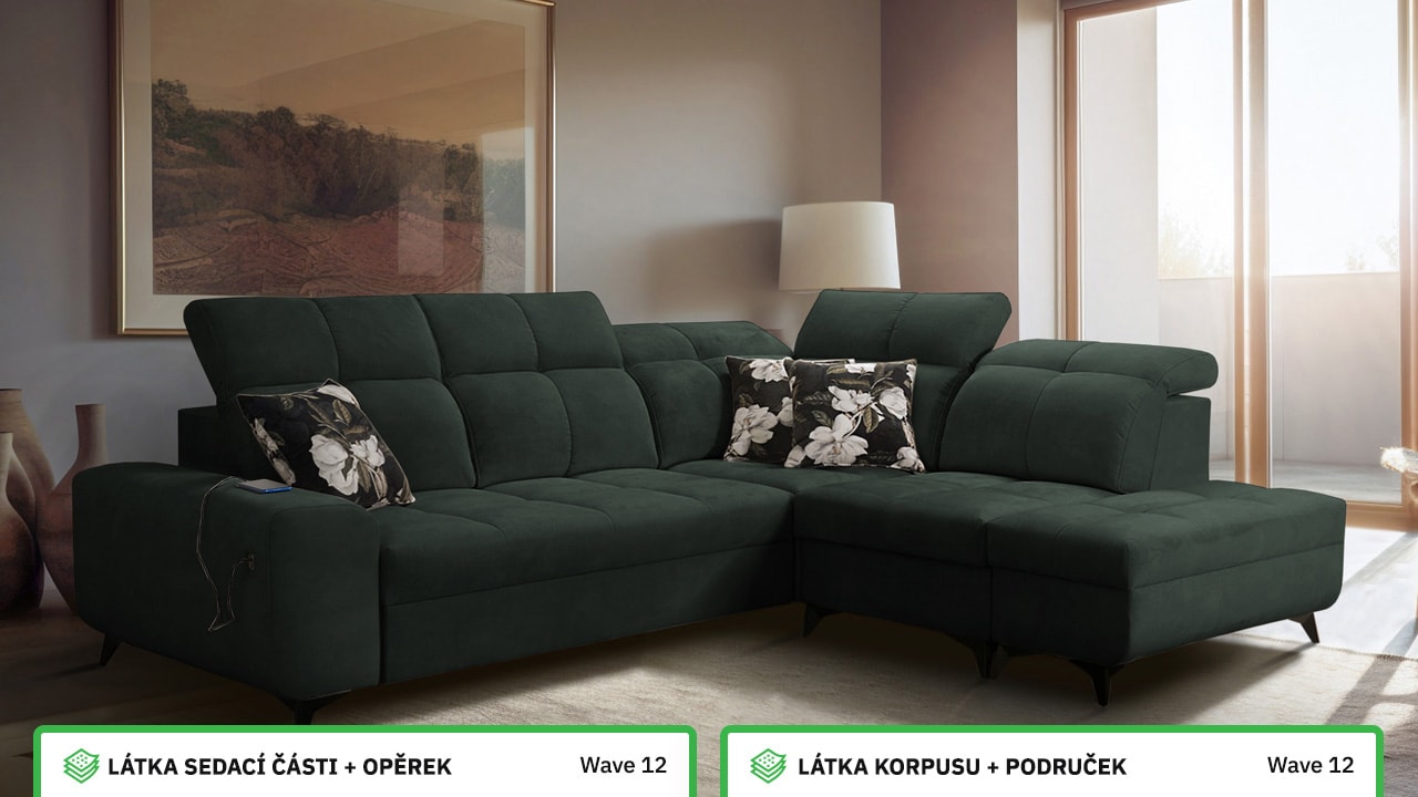 Univerzální rohová sedačka vynikne v každém interiéru. Není jen synonymem pohodlí, ale také praktičnosti a elegance. S polohovatelnými opěrkami hlavy a vestavěným USB portem pro nabití mobilu nebo tabletu se stane ideálním společníkem pro relax. Díky možnosti výběru potahového materiálu a krásnému elegantnímu designu si ji snadno přizpůsobíte do jakéhokoli stylu bydlení. Sedačku nelze vyrobit v potahech Erie, Bristol a Bahama.