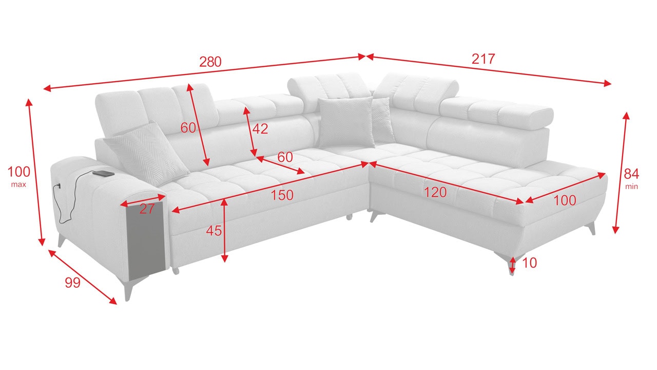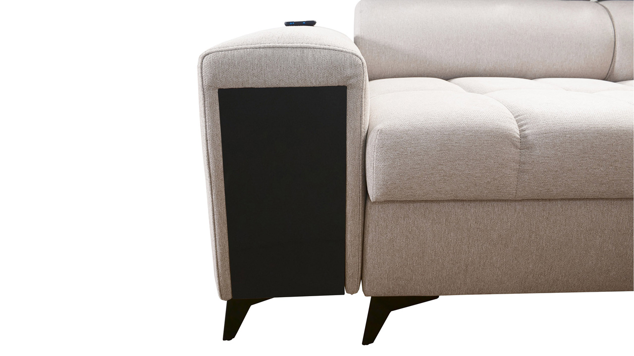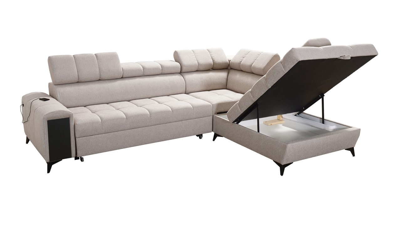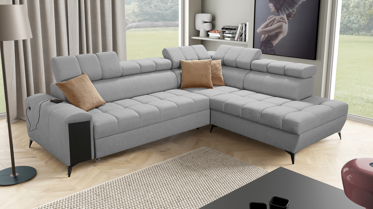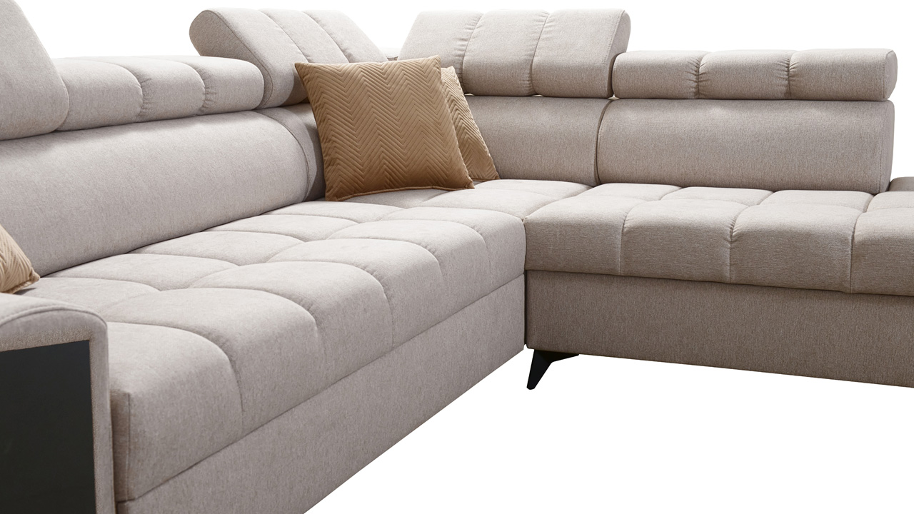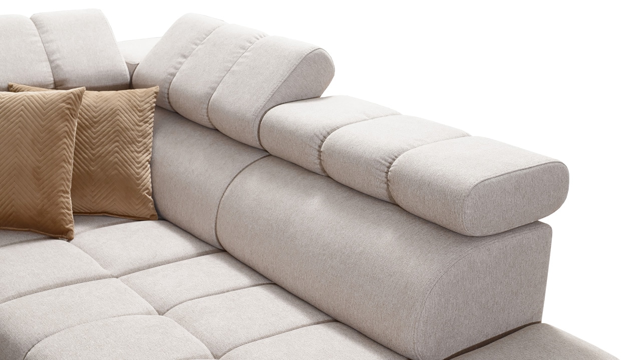 Hledáte sedačku, která spojí praktické se stylovým? Praktické funkce, jako úložný prostor, vestavěný minibar i polohovatelné opěrky hlavy, zajistíme my. Design si pak dotvoříte vy sami podle svého vkusu. V našem konfigurátoru si totiž můžete vybrat barvu a typ potahu (kromě potahů Erie, Bristol a Bahama), design nožiček, dřevěných prvků a polštářků. Sedačka výborně vynikne v neutrálních odstínech i ve výrazných barvách.