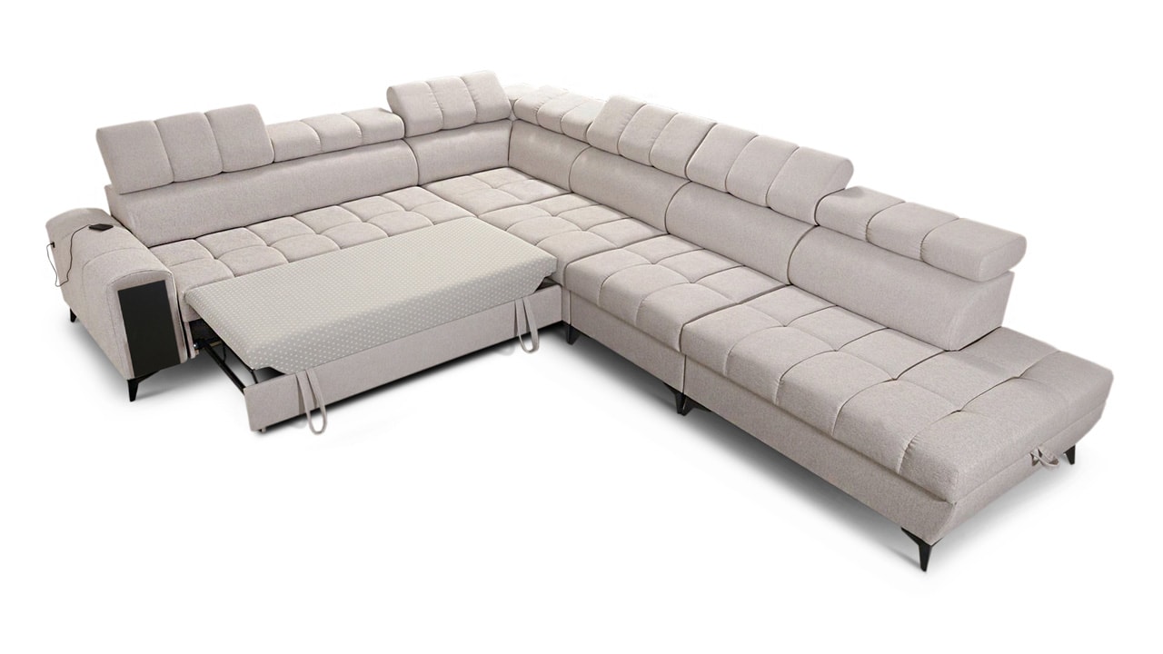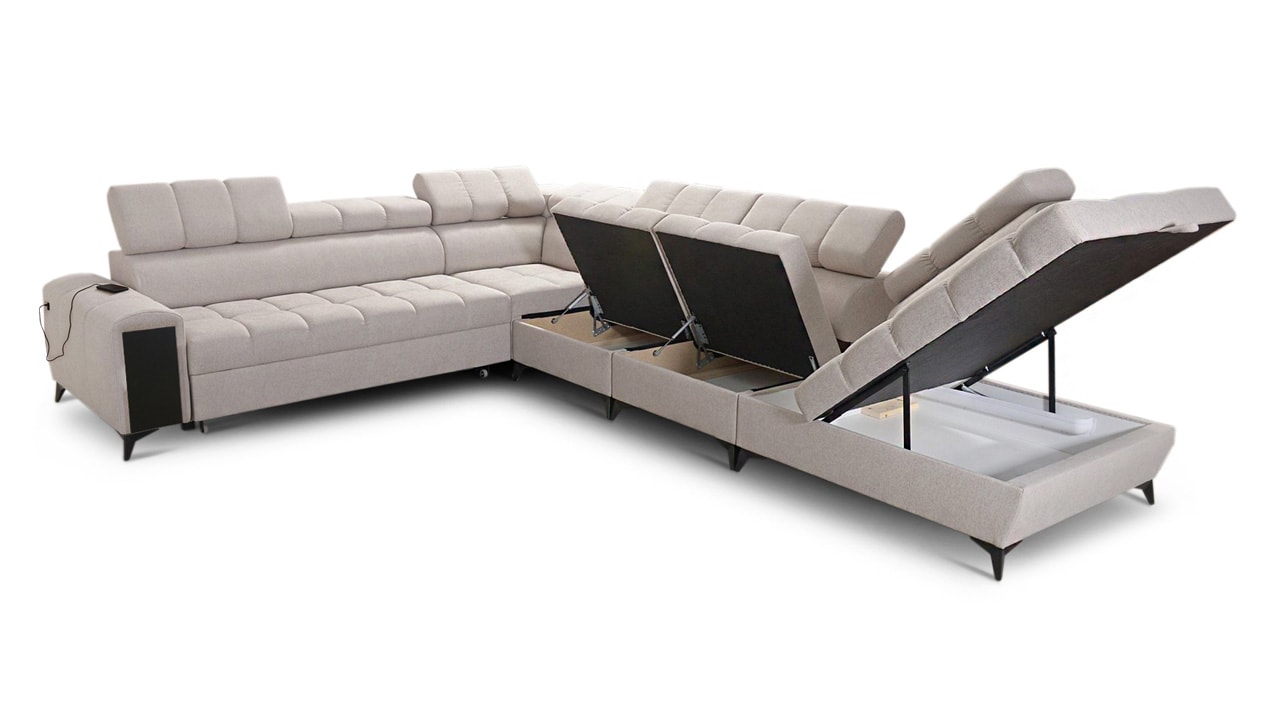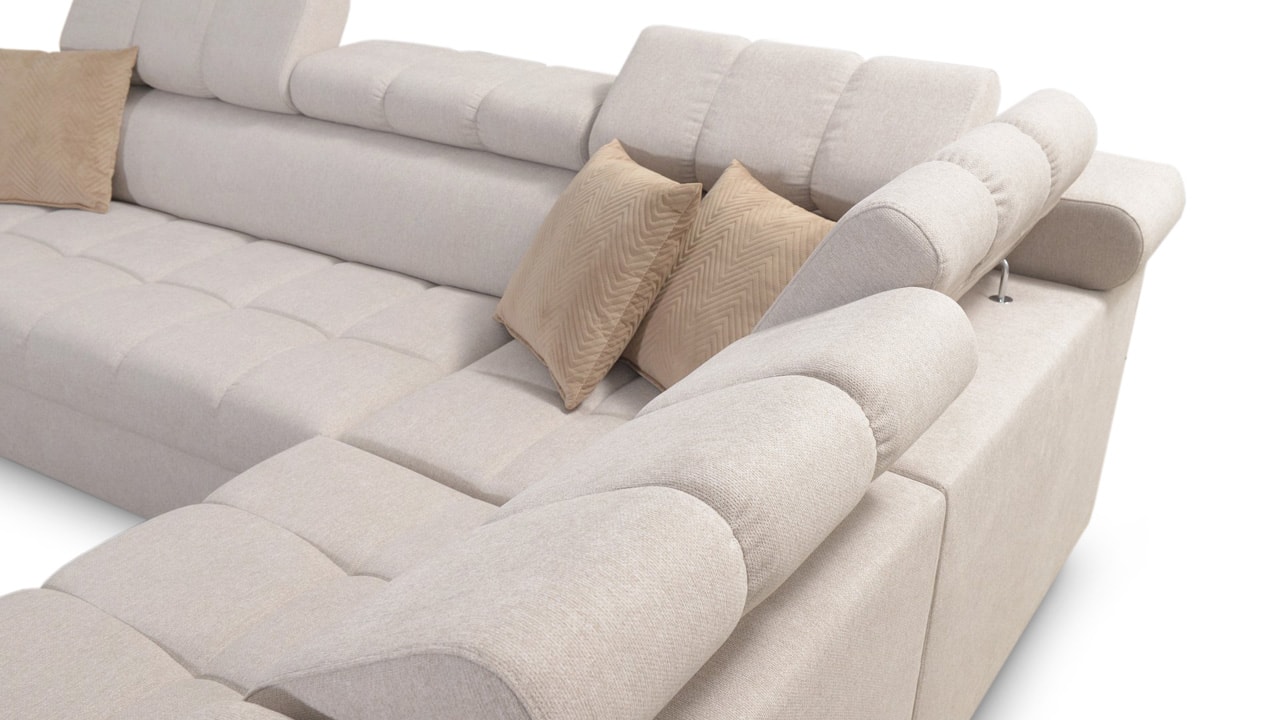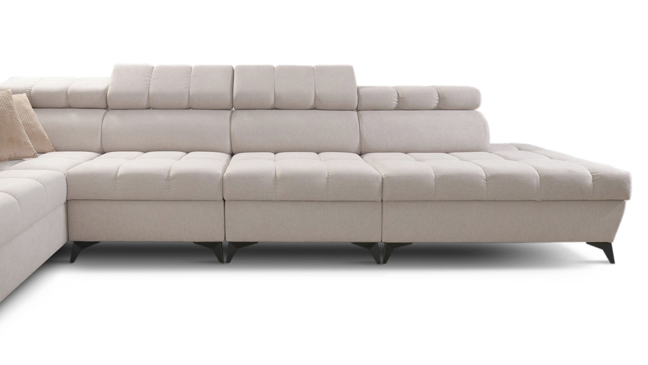 Dopřejte si odpočinek na jedné z největších rohových souprav, jaké v naší nabídce máme. Model Grecco XII vás překvapí svojí pohodlností, za kterou stojí polohovatelné opěrky hlavy a kvalitní vnitřní výplň. Z praktického hlediska oceníte velký úložný prostor, možnost rozložení, vestavěný USB port a minibar. Sedačku si můžete nechat vyrobit v jakékoli látce z našeho vzorníku, kromě látek Erie, Bristol a Bahama.