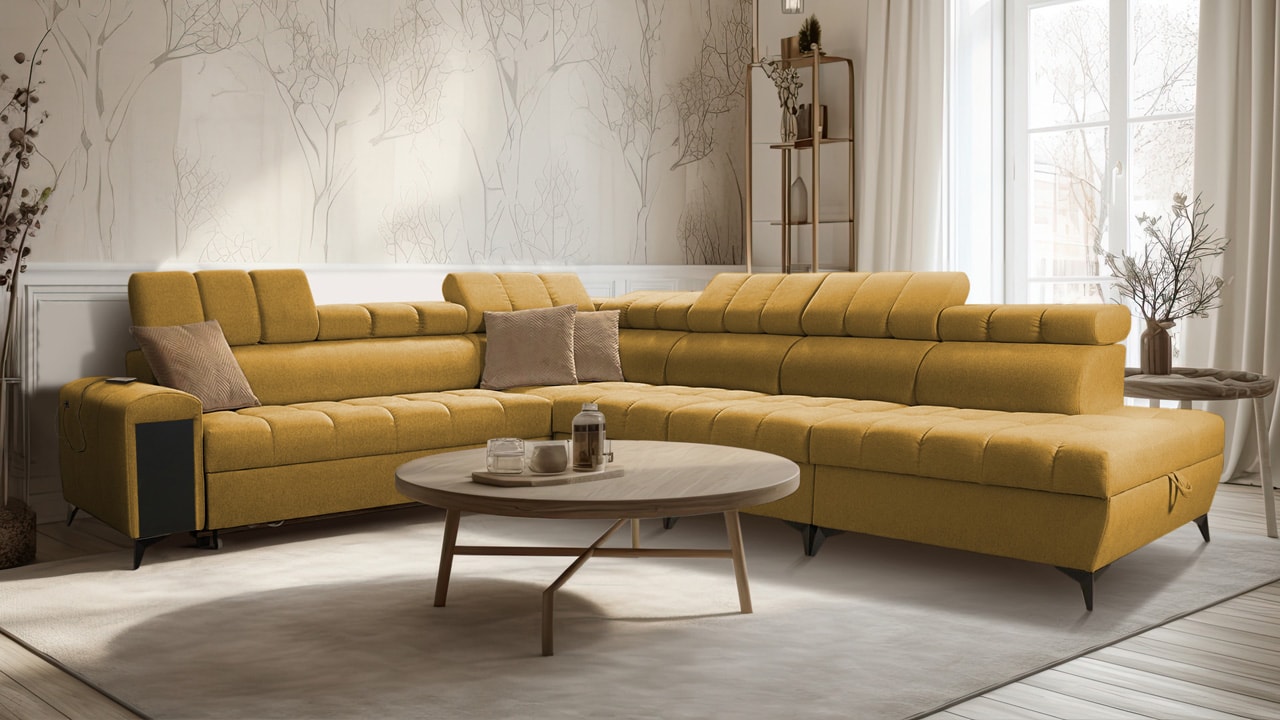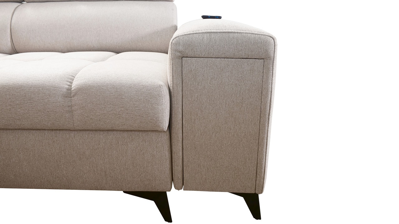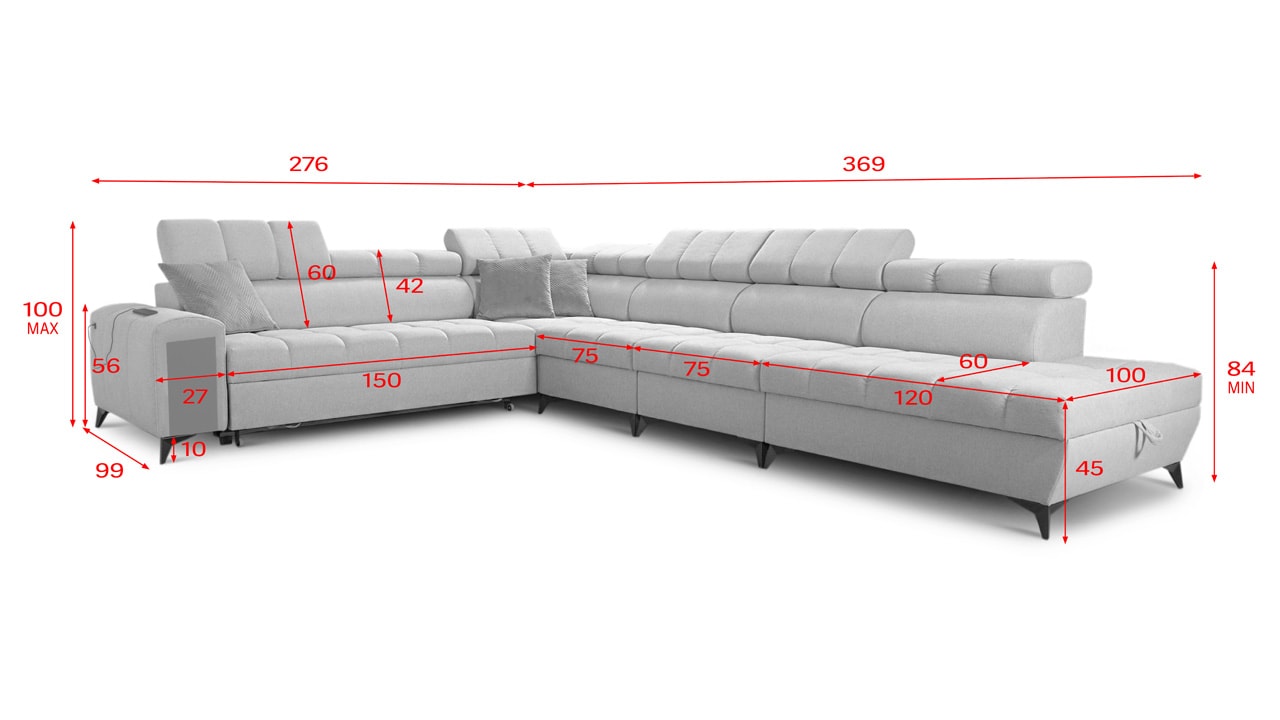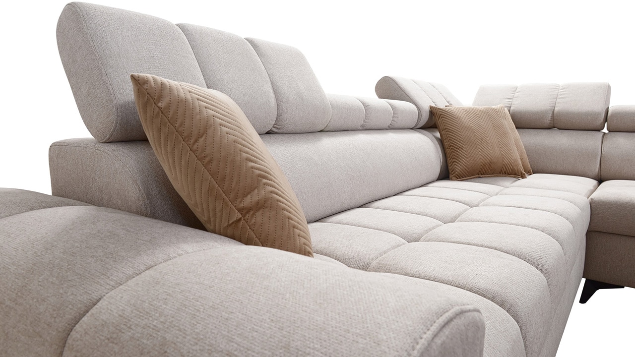Dopřejte si odpočinek na jedné z největších rohových souprav, jaké v naší nabídce máme. Model Grecco XII vás překvapí svojí pohodlností, za kterou stojí polohovatelné opěrky hlavy a kvalitní vnitřní výplň. Z praktického hlediska oceníte velký úložný prostor, možnost rozložení, vestavěný USB port a minibar. Sedačku si můžete nechat vyrobit v jakékoli látce z našeho vzorníku, kromě látek Erie, Bristol a Bahama.