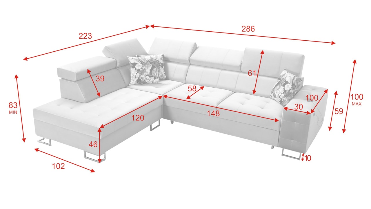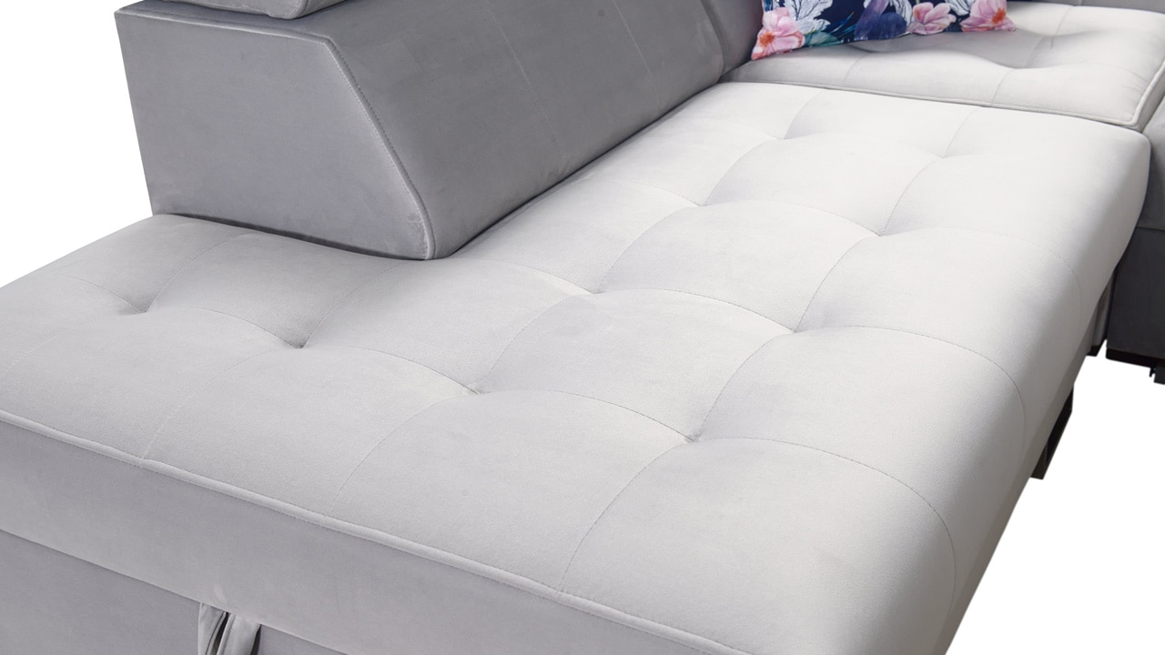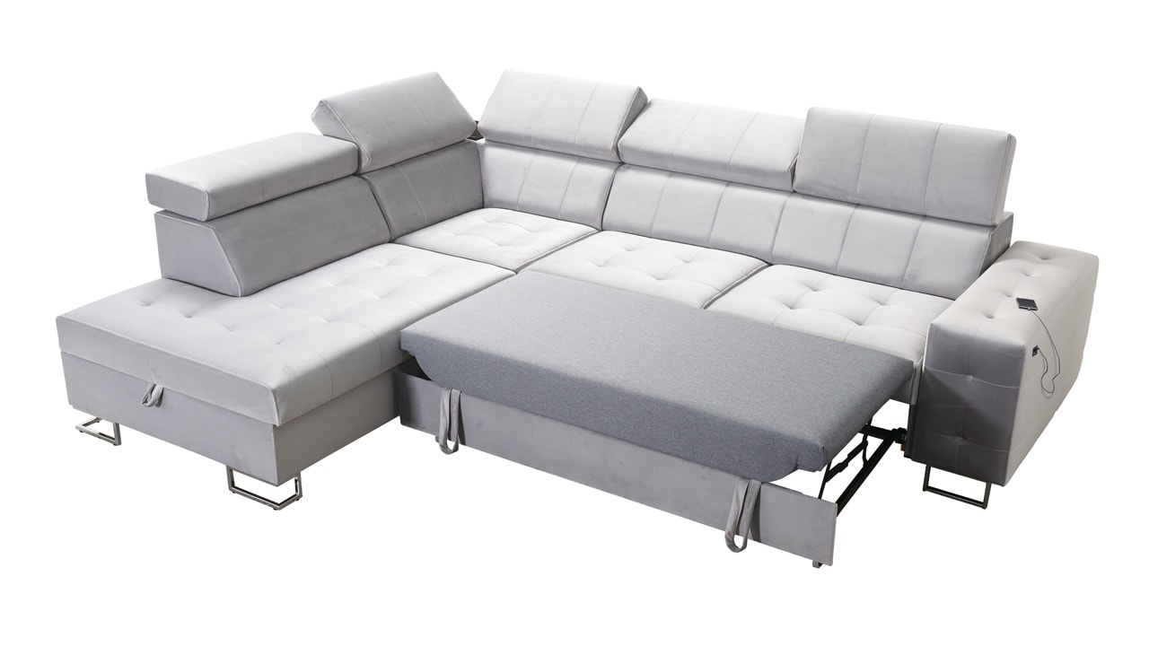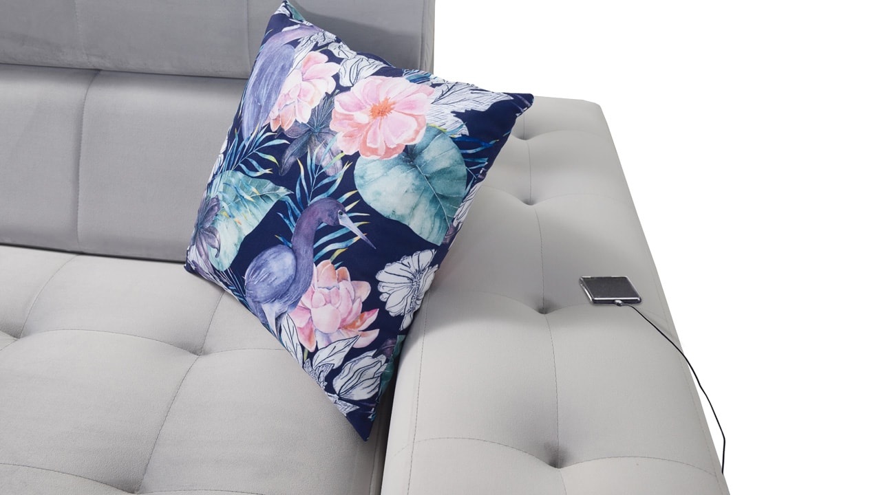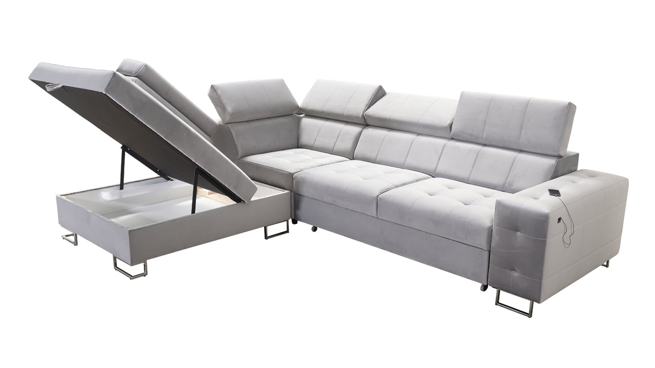 Moderní rohová sedačka, která vám poskytne flexibilitu a komfort. Podle svých představ si totiž můžete zvolit nejen barvu a typ potahové látky, ale také design nožiček a orientaci rohu na pravou či levou stranu. No a co ten komfort? Ten zajistí kvalitní výplň sezení, pohodlné opěrky páteře, nastavitelné opěrky hlavy, možnost rozložení a vestavěný USB port pro nabíjení, díky kterému budete mít mobil či tablet vždycky po ruce.
