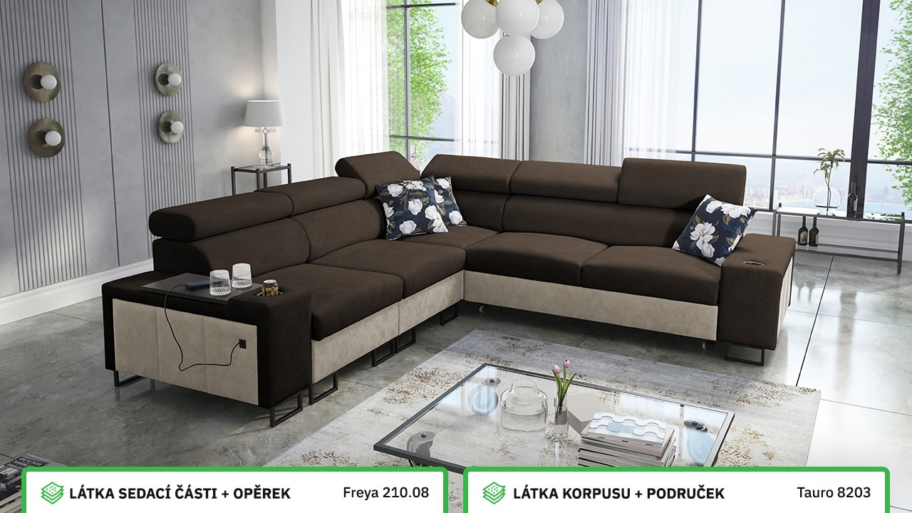 V našem konfigurátoru si velmi jednoduše nadesignujete vaši novou sedačku. Nejprve vás čeká výběr rohu, a poté si zvolíte požadovanou potahovou látku sedáku a korpusu. V posledních krocích si vybíráte vzor polštářů, typ doplňků a nožiček. Celý konfigurátor je dostatečně přehledný, abyste si svoji novou sedací soupravu navrhli přesně podle vašich představ.