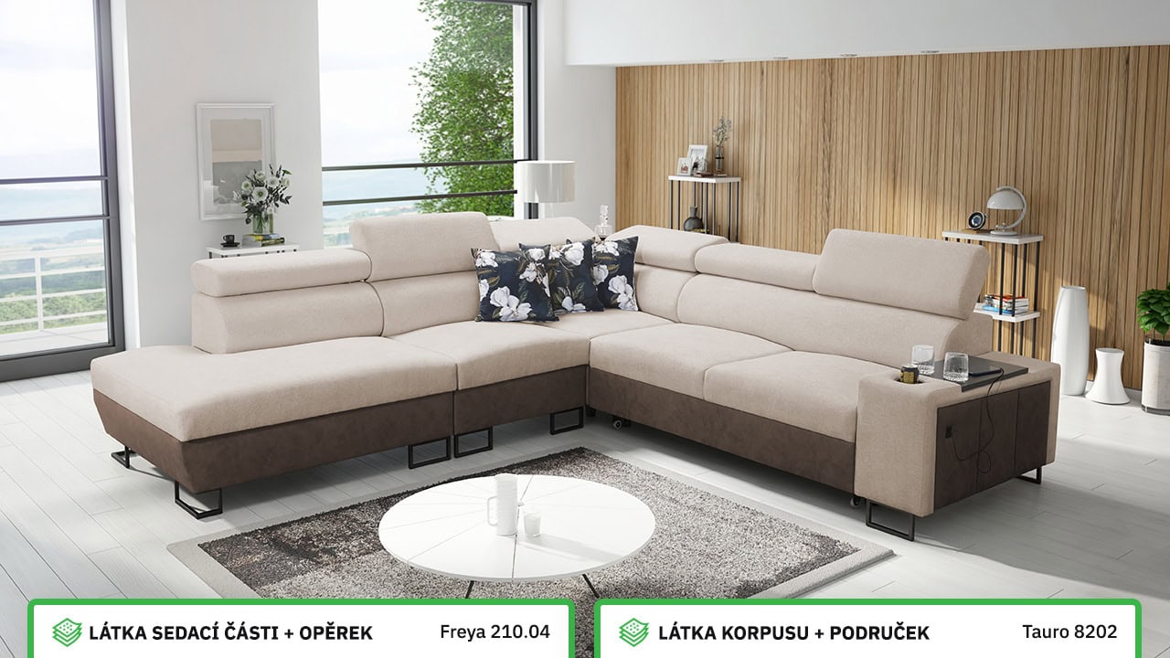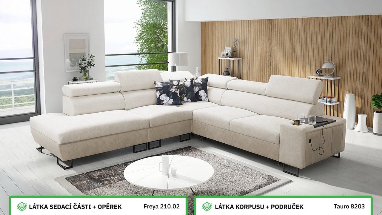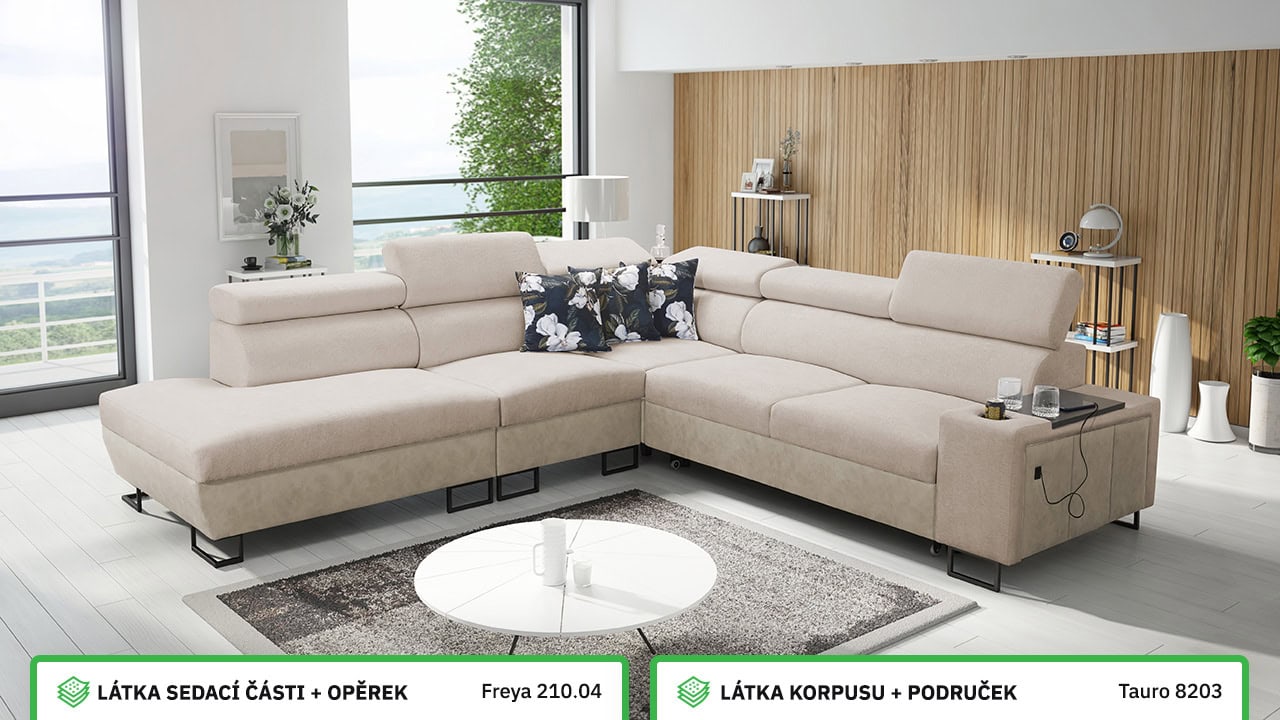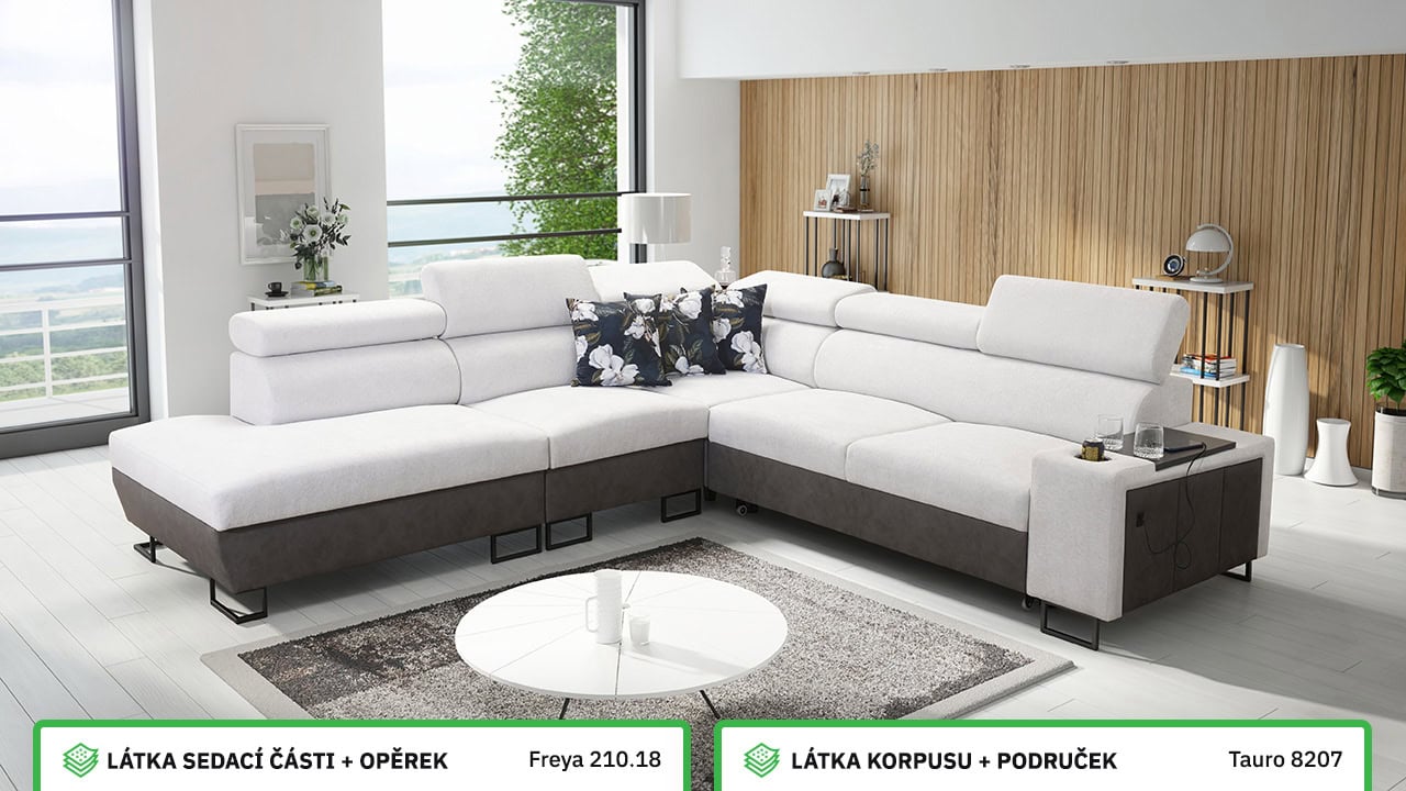 V našem konfigurátoru si velmi jednoduše nadesignujete vaši novou sedačku. Nejprve vás čeká výběr rohu, a poté si zvolíte požadovanou potahovou látku sedáku a korpusu. V posledních krocích si vybíráte vzor polštářů, typ doplňků a nožiček. Celý konfigurátor je dostatečně přehledný, abyste si svoji novou sedací soupravu navrhli přesně podle vašich představ.