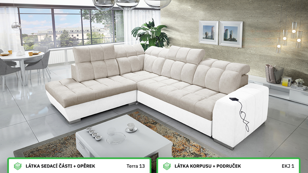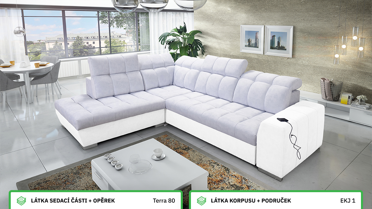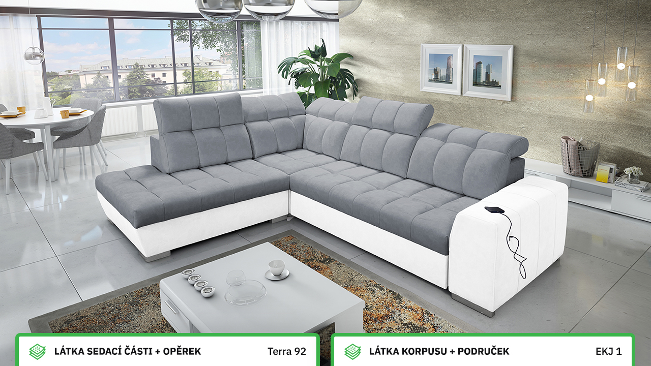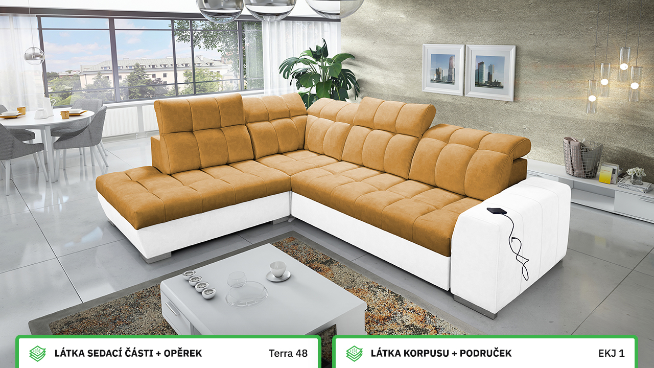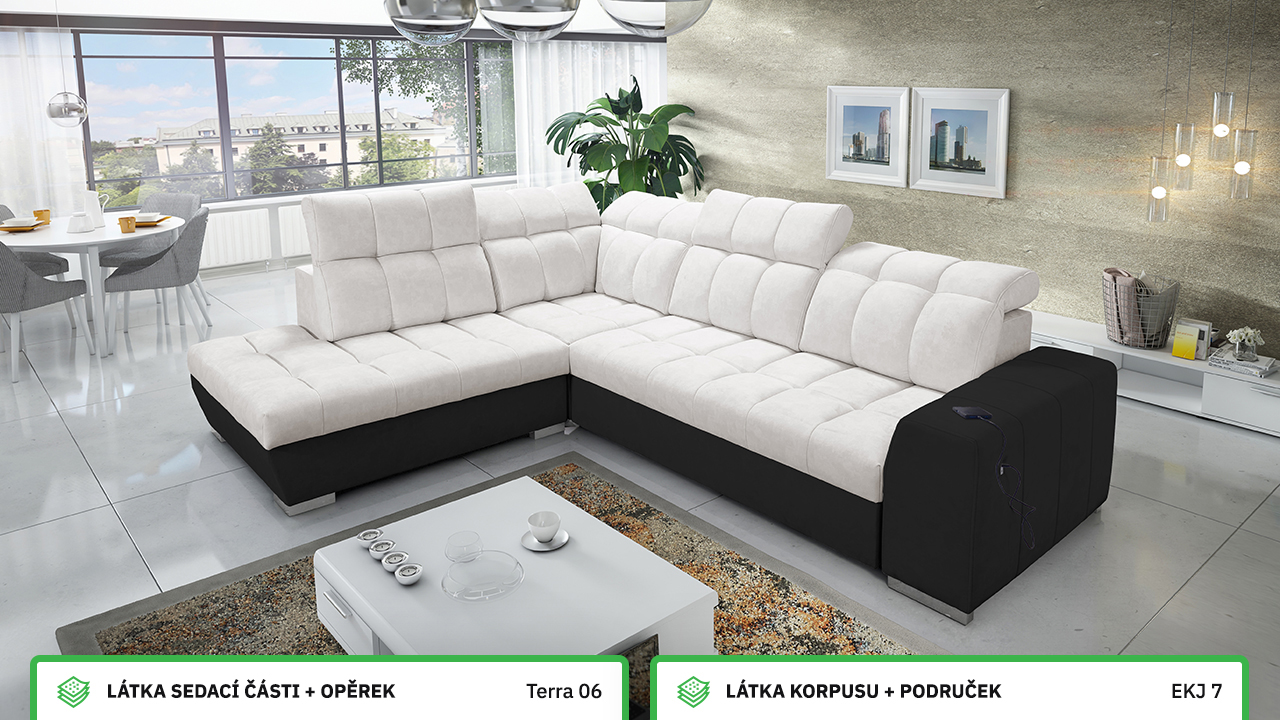 V našem konfigurátoru si velmi jednoduše nadesignujete vaši novou sedačku. Nejprve vás čeká výběr rohu, a poté si zvolíte požadovanou potahovou látku sedáku a korpusu. V posledních krocích si vybíráte vzor polštářů, typ doplňků a nožiček. Celý konfigurátor je dostatečně přehledný, abyste si svoji novou sedací soupravu navrhli přesně podle vašich představ.