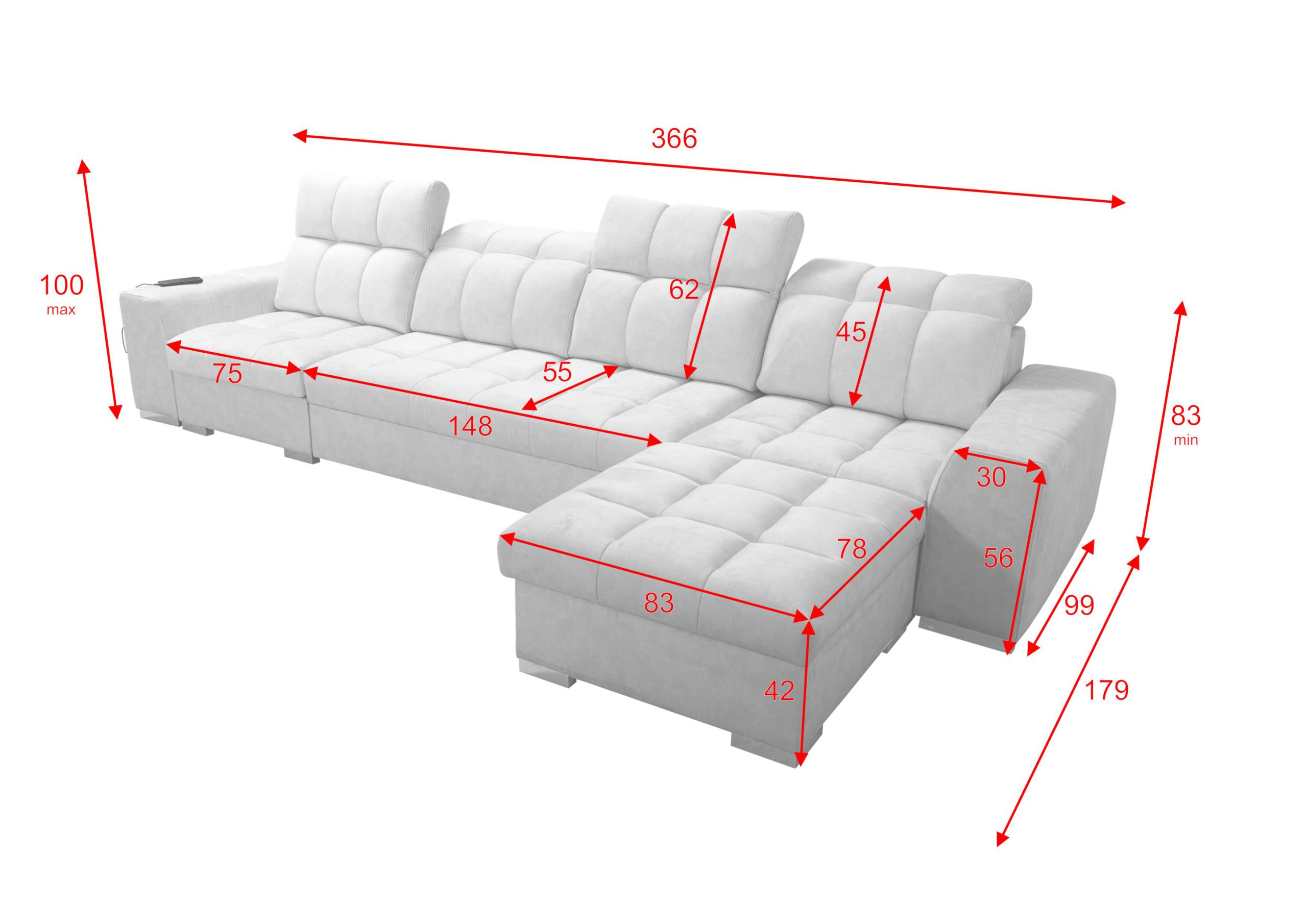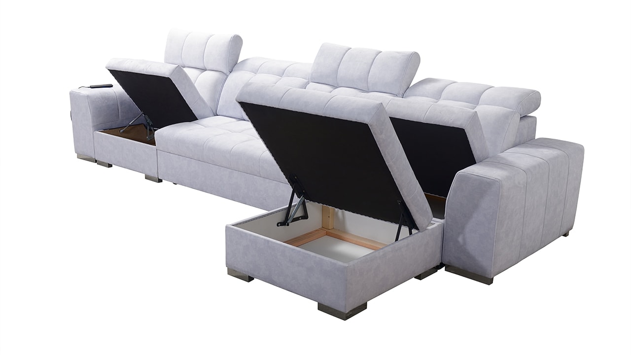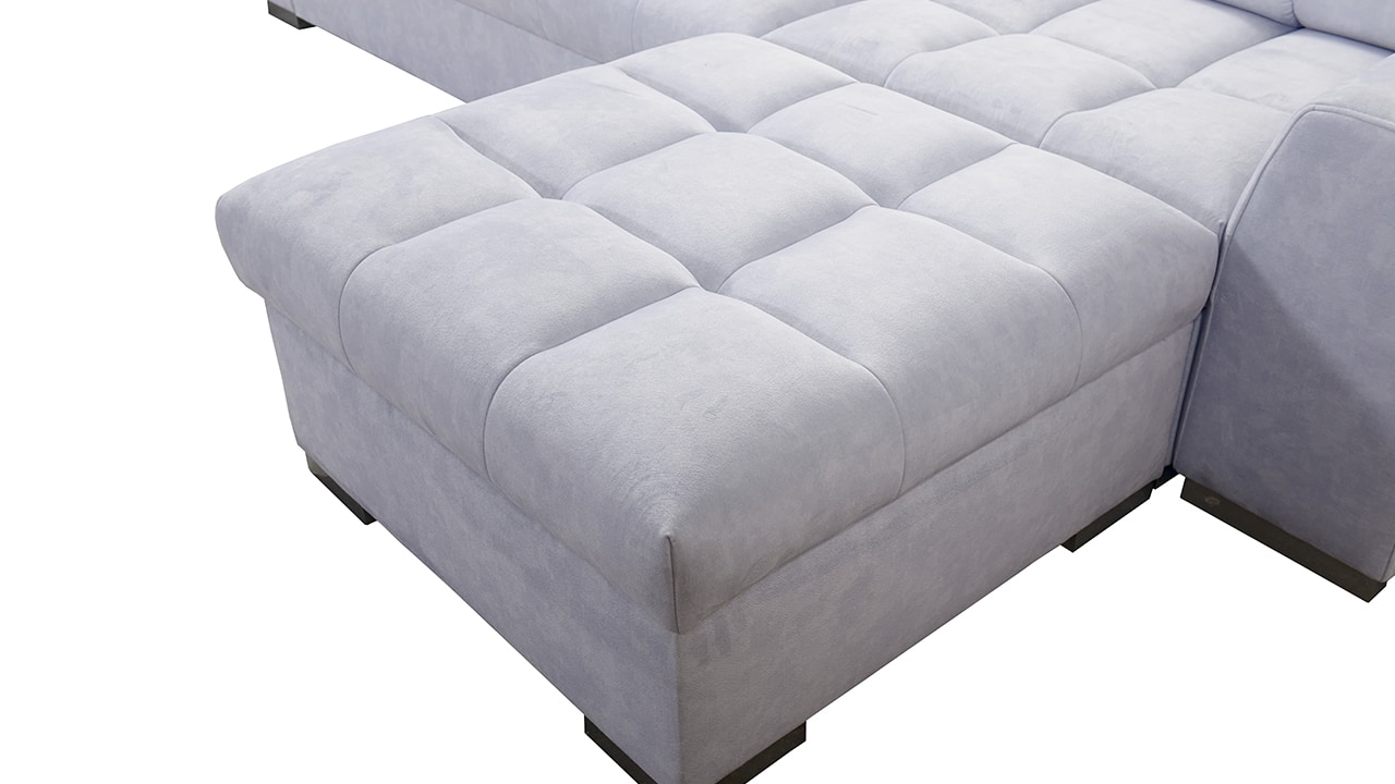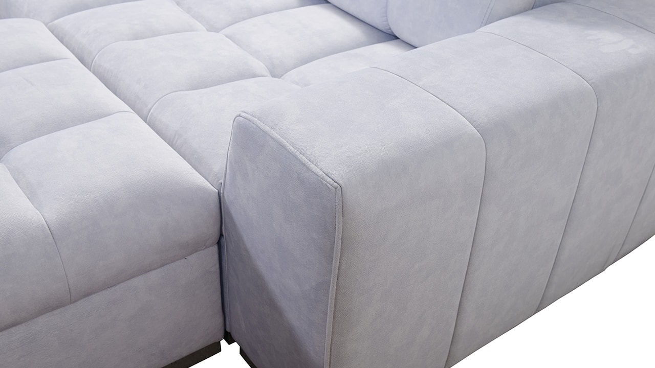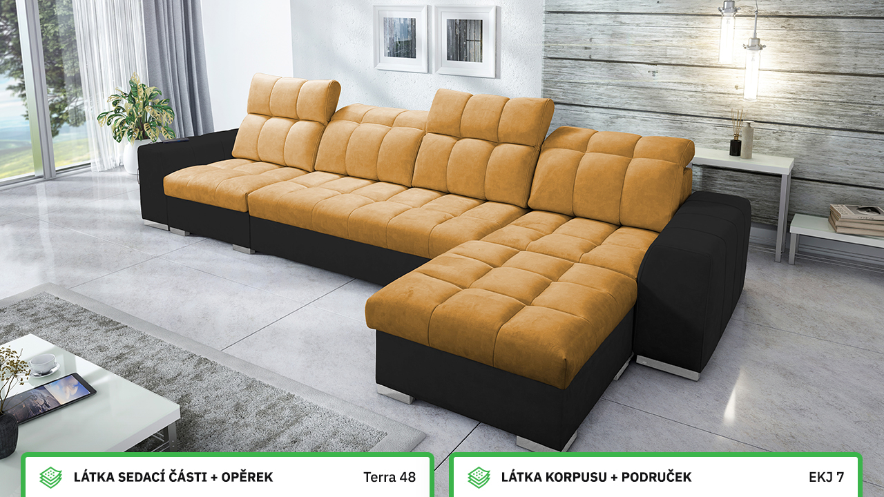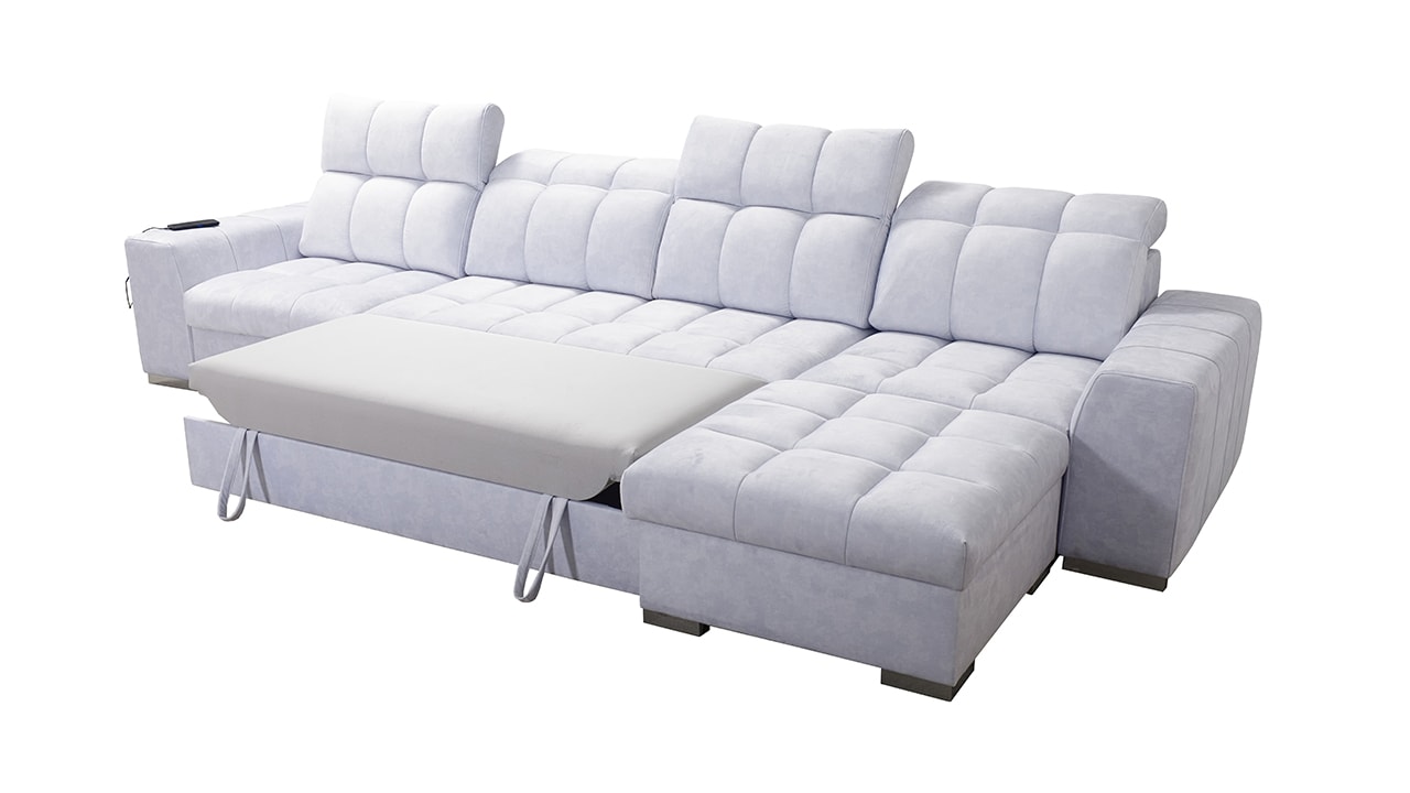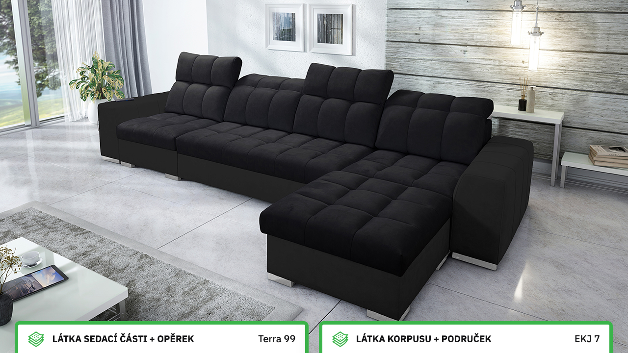 Univerzální rohová sedací souprava nadesignovaná pro maximální komfort a funkčnost. S její velkou pohodlnou plochou k sezení a polohovatelnými opěrkami hlavy si vytvoříte ideální místo pro sledování oblíbeného filmu, čtení knihy nebo vítání vašich návštěv. Návštěvu nejenže usadíte, ale i uložíte. Po rozložení sedačka poskytne komfortní místo ke spaní pro dva lidi. Sedačku nelze vyrobit v potazích Erie, Bristol a Bahama.