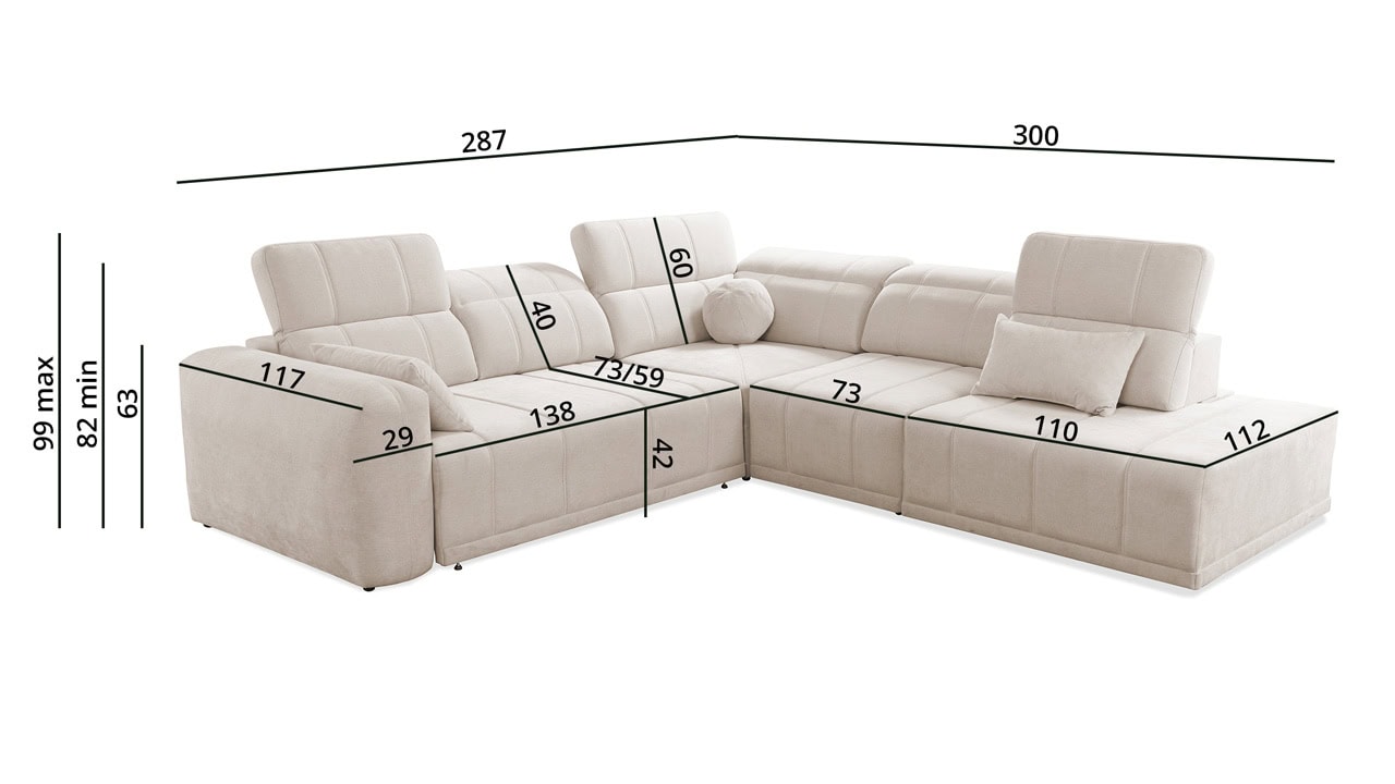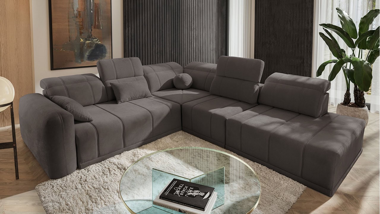 Pohodlí na nejvyšší úrovni vám přinese naše rohová sedačka Raveli IX. Komfortní sezení, nastavitelné opěrky hlavy a posouvatelná zádová opěrka potěší i ty nejnáročnější. Sedačka je vyrobena z kvalitních materiálů. Disponuje také praktickým úložným prostorem a po rozložení se přemění na pohodlné lůžko pro příležitostné prospání. Potáhneme vám ji jakýmkoli materiálem z našeho vzorníku. Nádherně vynikne v přírodních barvách, například zemité hnědé nebo šedé.
