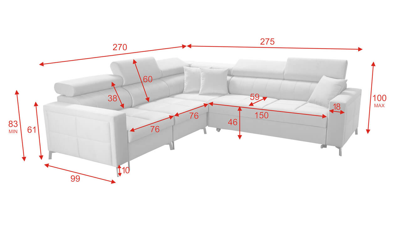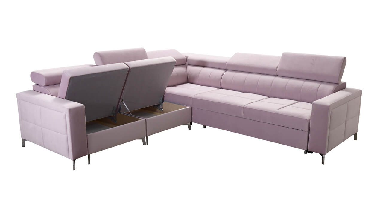 Moderní, pohodlná a kvalitní rohová sedačka, která se díky svým rozměrům hodí také do menších panelákových bytů. Má vestavěné polohovatelné opěrky hlavy, úložný prostor i možnost rozložení. Výhodou také je, že typ a barvu potahové látky si můžete na sedačku nakombinovat podle sebe. Snadno ji tak sladíte i se starším nábytkem. Prohlédněte si vizualizace a nechte se inspirovat našimi návrhy barevných provedení.