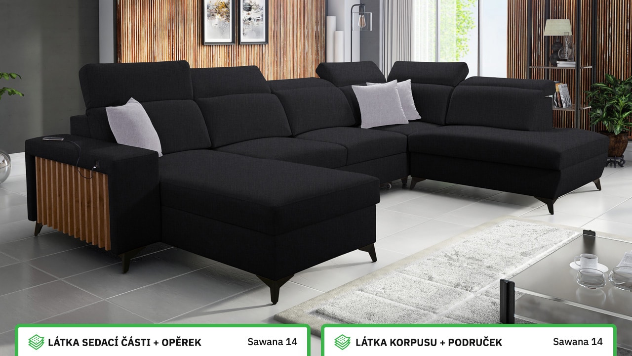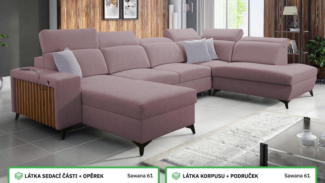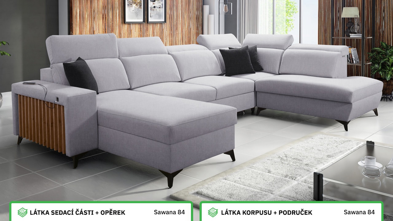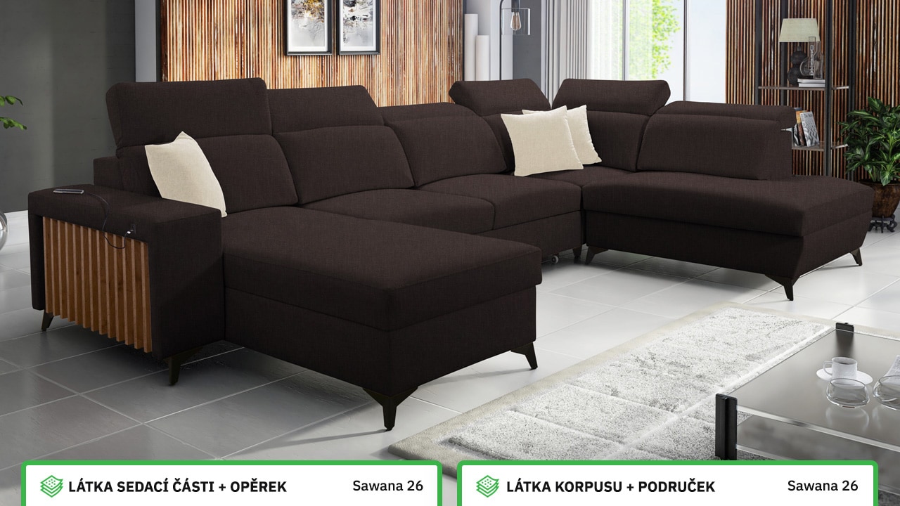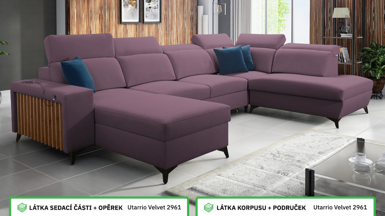 Nevíte najít tu správnou sedací soupravu? Toužíte po výrazné zářivé barvě, nebo naopak po jemných zemitých odstínech? Tuto sedačku si můžete nechat vyrobit na míru v jakémkoli potahu z našeho vzorníku. Dolaďte si k ní ještě zajímavý designový dřevěný prvek a pak už si jen sedněte a zrelaxujte. Pomůže vám v tom pohodlné sezení, polohovatelné opěrky hlavy i vestavěné USB porty pro nabití mobilu nebo tabletu.