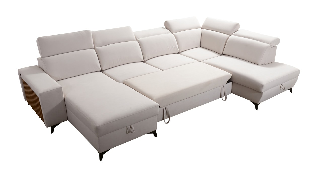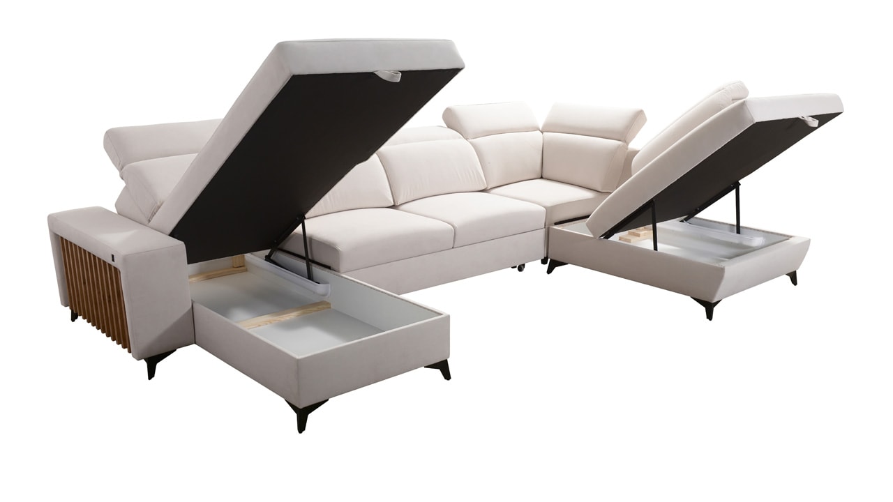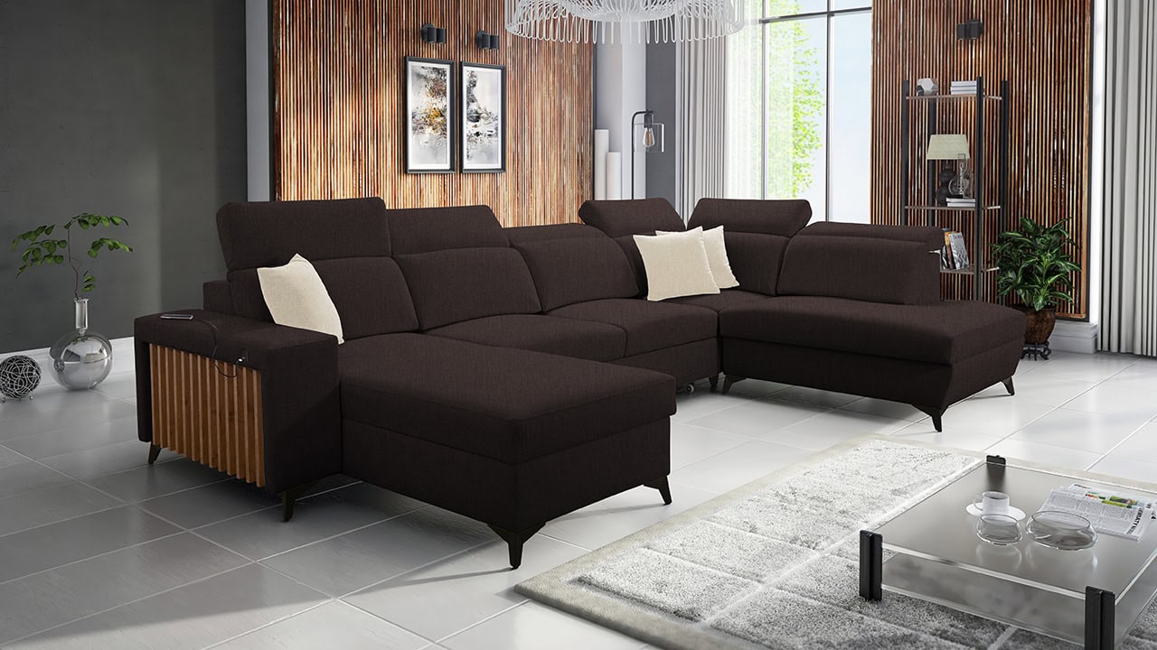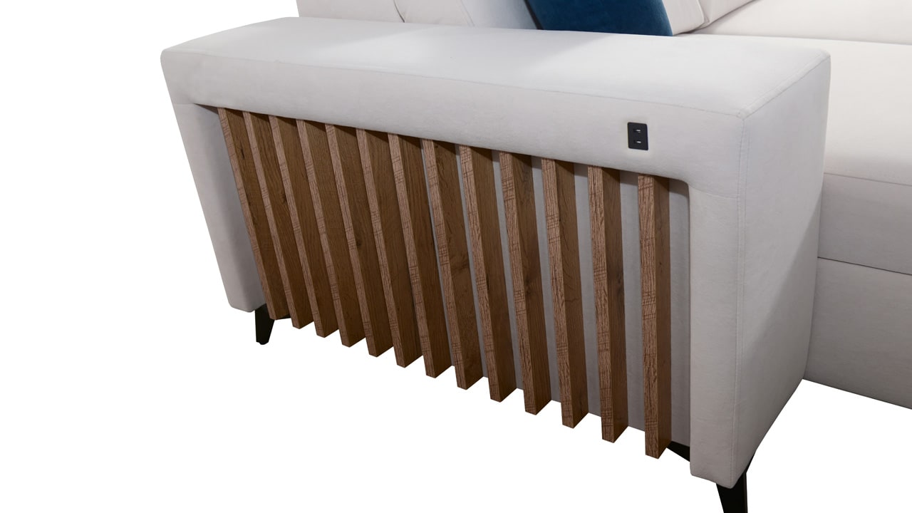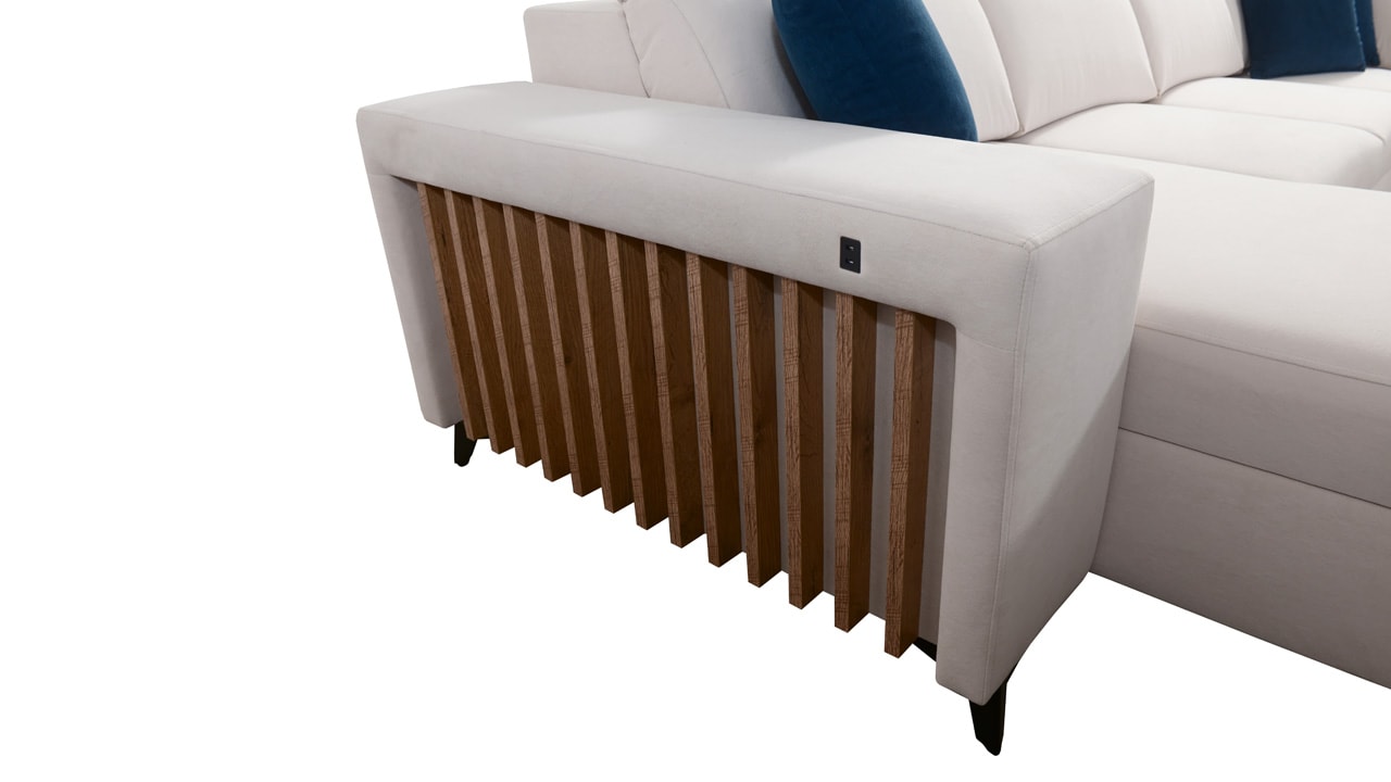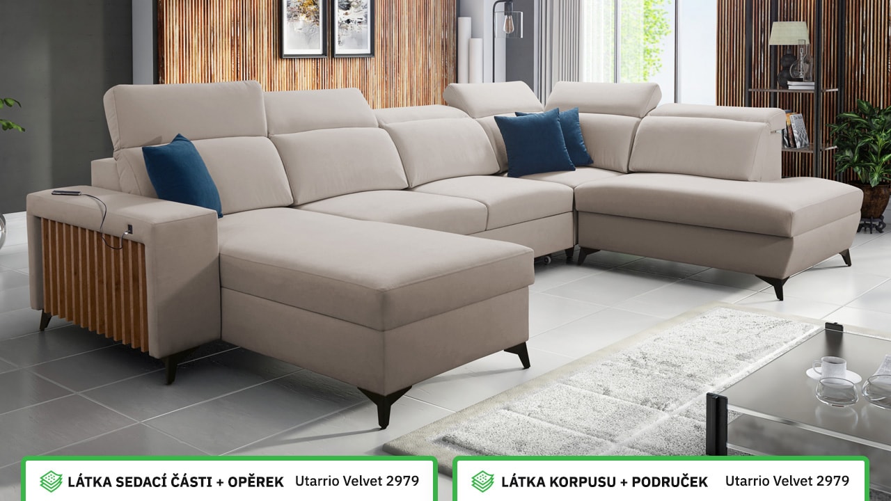 Nevíte najít tu správnou sedací soupravu? Toužíte po výrazné zářivé barvě, nebo naopak po jemných zemitých odstínech? Tuto sedačku si můžete nechat vyrobit na míru v jakémkoli potahu z našeho vzorníku. Dolaďte si k ní ještě zajímavý designový dřevěný prvek a pak už si jen sedněte a zrelaxujte. Pomůže vám v tom pohodlné sezení, polohovatelné opěrky hlavy i vestavěné USB porty pro nabití mobilu nebo tabletu.
