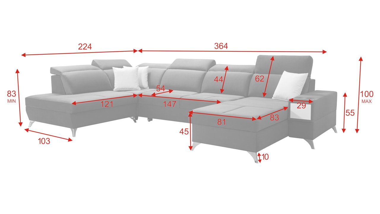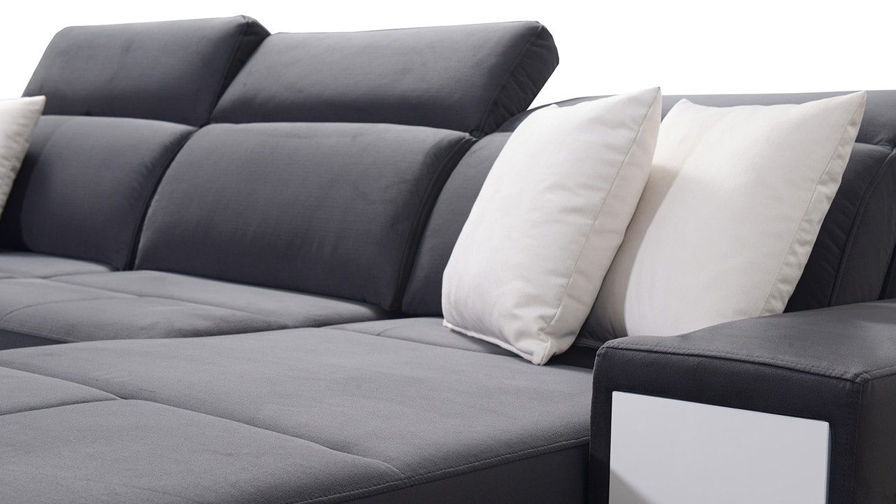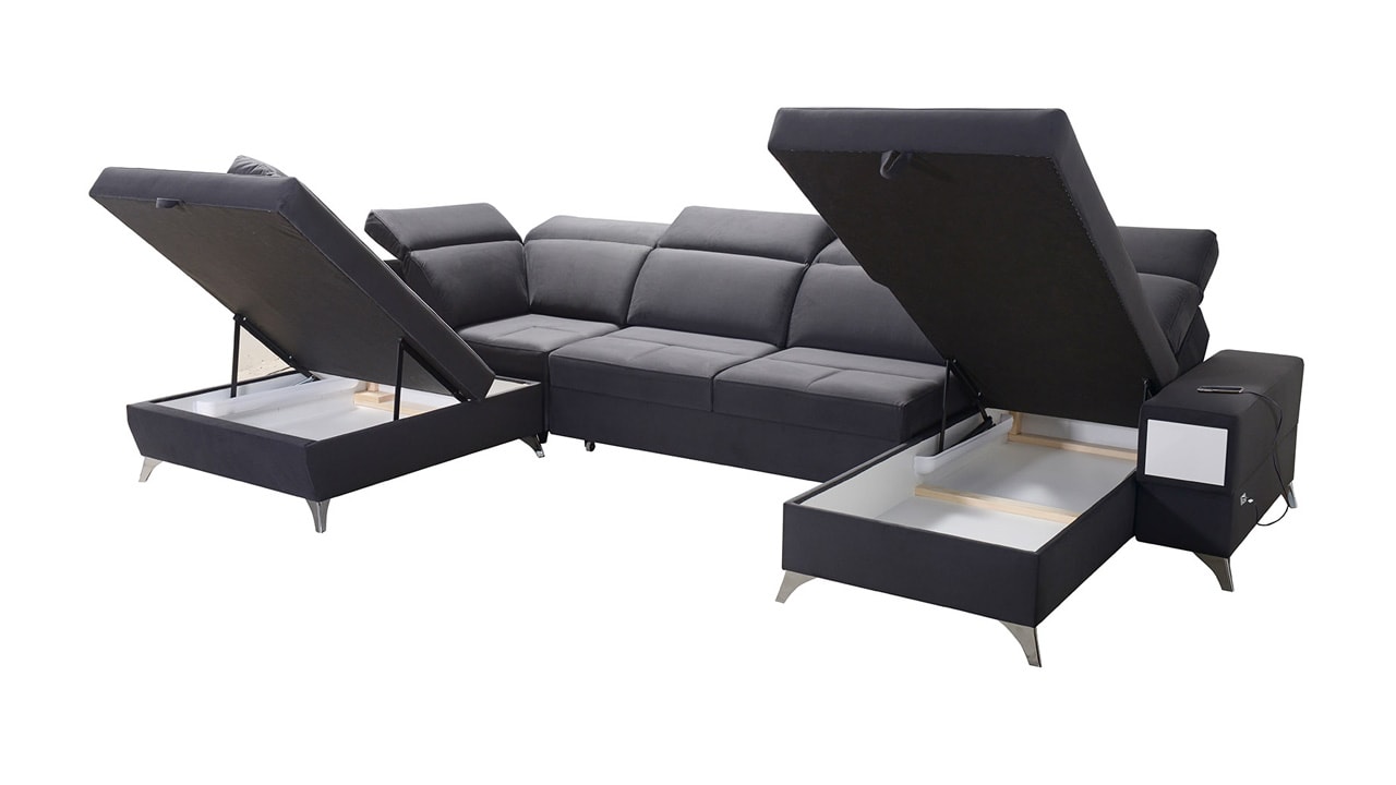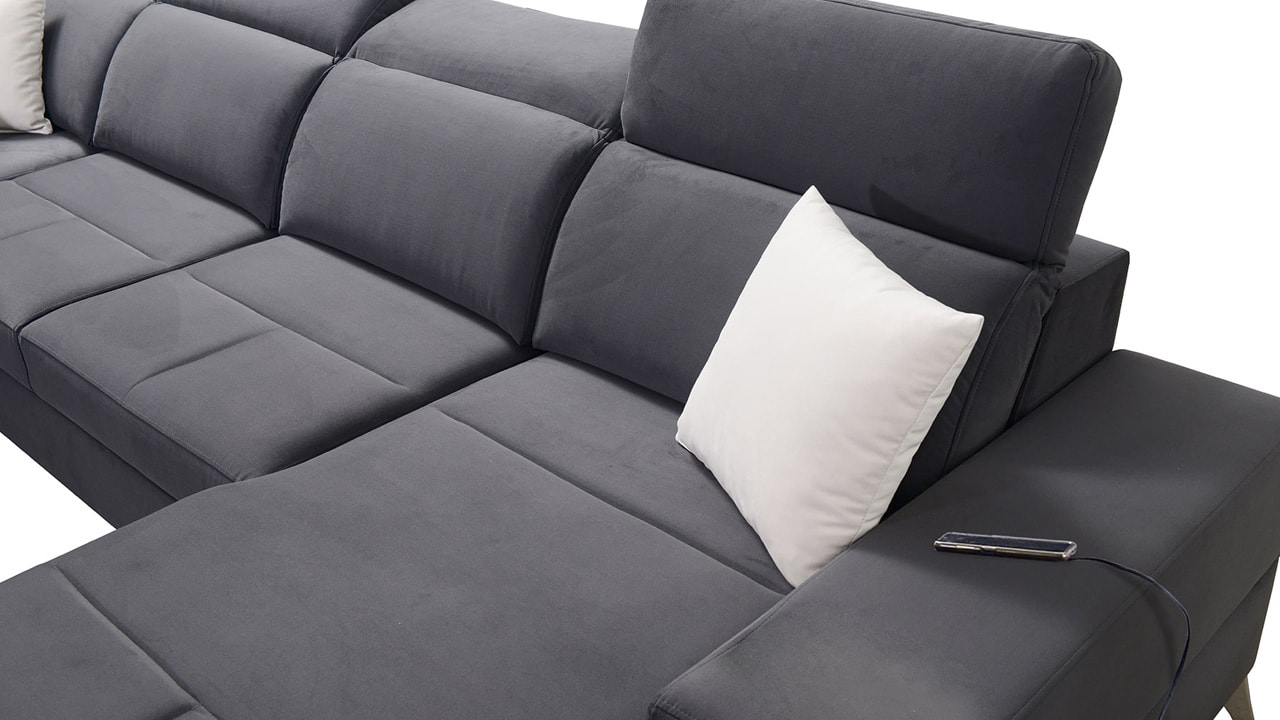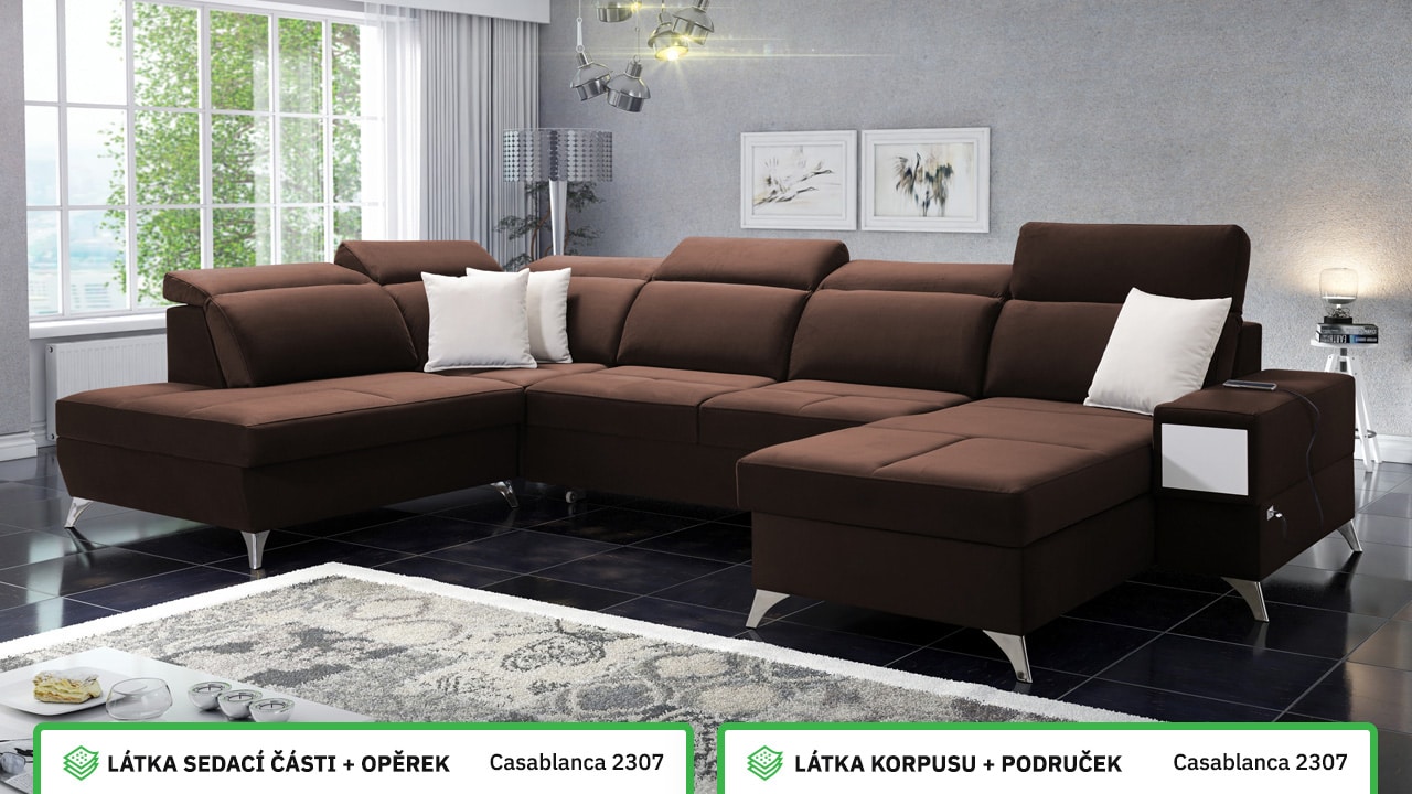 Chcete si sedačku přizpůsobit vlastním představám? Model sedací soupravy ve tvaru U Deuss VI vám to umožní na pár kliků. Je vybaven polohovatelnými opěrkami hlavy, USB nabíjecí stanicí a možností rozložení. Kromě potahové látky si na sedačku budete moci zkombinovat také typ nožiček a design vestavěného šuplíku. Jediné fixní jsou její rozměry. Konfigurátor se vám zobrazí v dalším kroku objednávky.