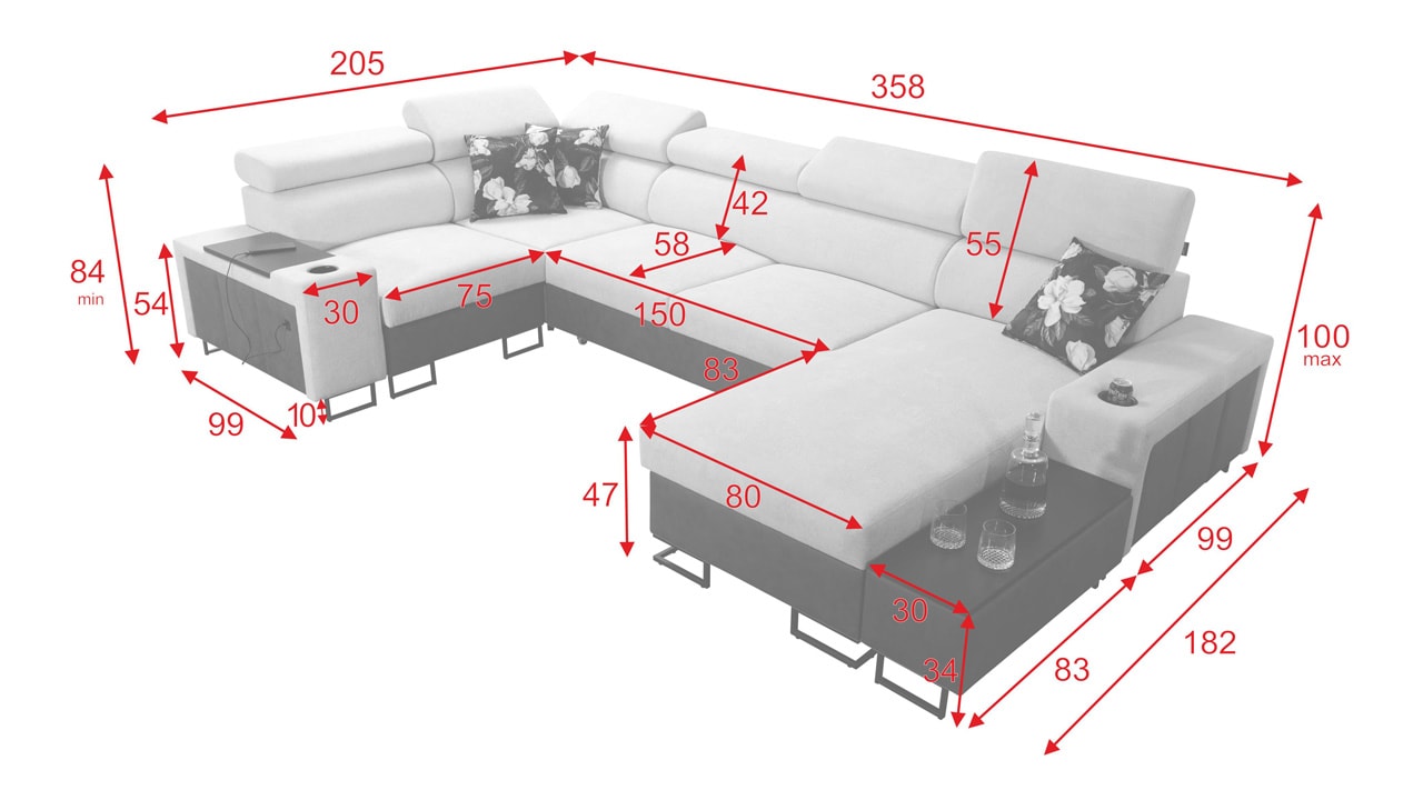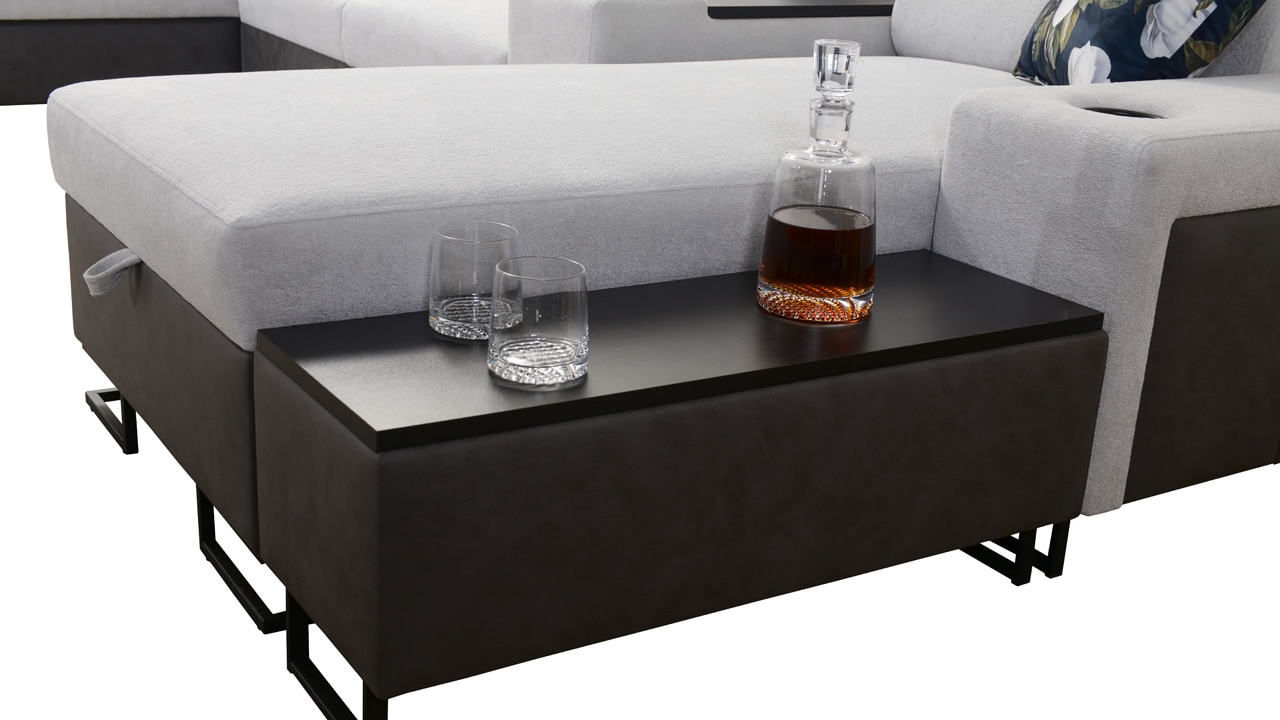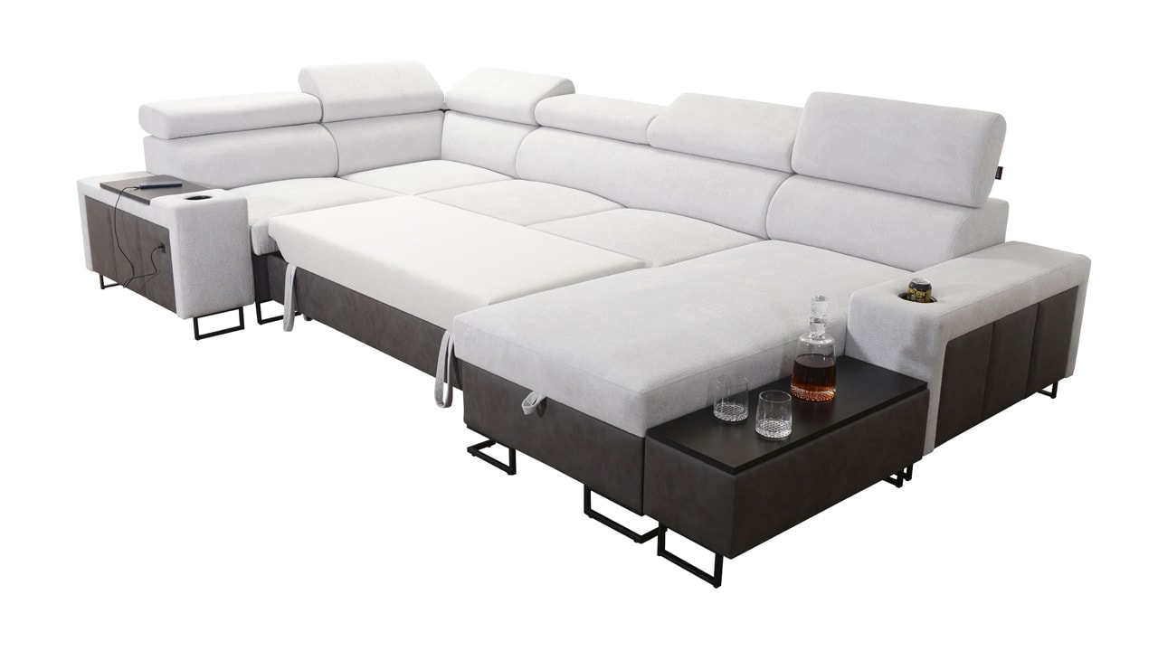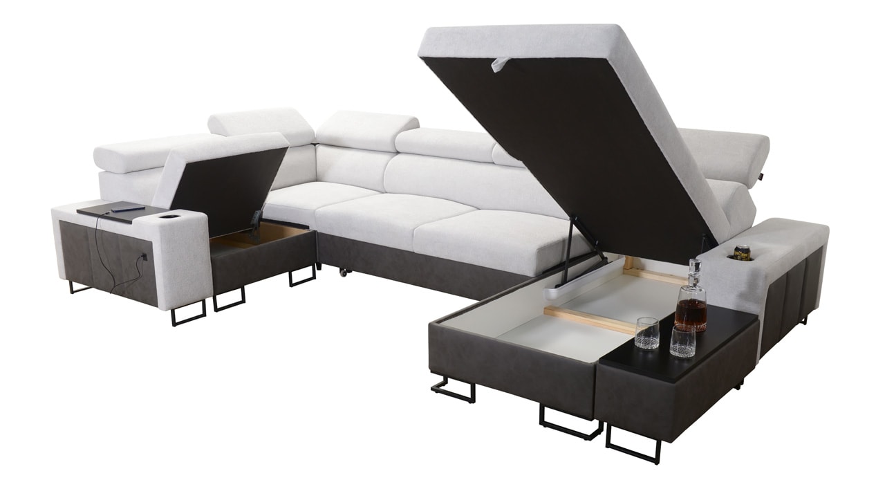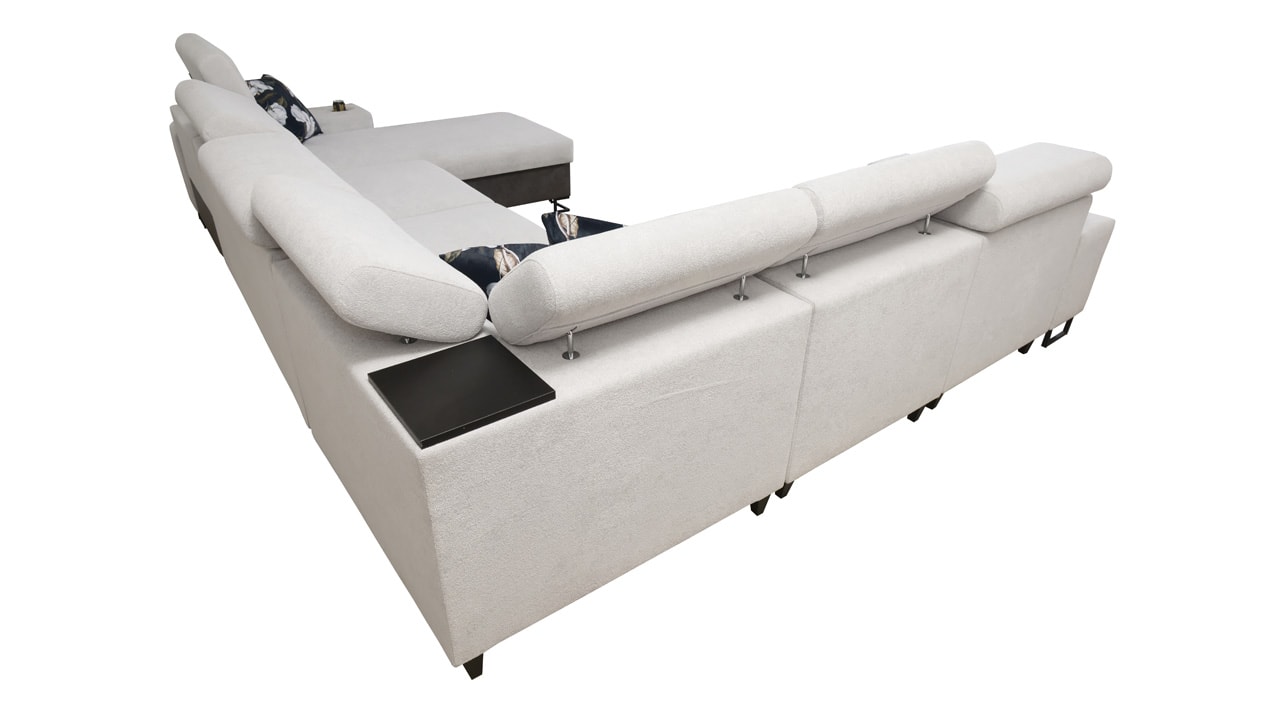 Nadčasový design, bezpodmínečná kvalita a praktická funkčnost – tyto 3 vlastnosti nejlépe charakterizují U sedací soupravu MELODIA IV MAXI. Je vyrobena z odolných materiálů, zaručuje dlouhou životnost a elegantní vzhled. Disponuje polohovatelnými opěrkami hlavy, velkým úložným prostorem, vestavěným minibarem, držáky na sklenice, zabudovanou USB nabíječkou a možností rozložení.