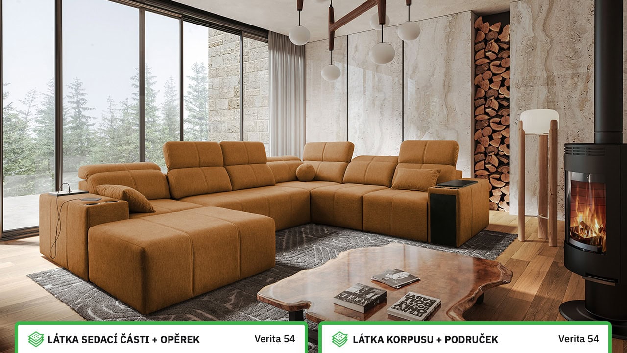 Hledáte elegantní model sedací soupravy do velkého obývacího pokoje? Učková sedací souprava Mendy bude pro vás to pravé. Nabízí štědrý prostor k sezení pro celou rodinu i návštěvy. Uložte sezónní věci do dvoudílného úložného prostoru a připravte pohodlné lůžko pro hosty během několika minut. Tato sedačka navíc spojuje elegantní a moderní design s množstvím doplňků – vestavěný minibar, zásuvka na ovladače a jiné drobnosti, nabíjecí stanice i držáky na sklenice, to vše jen pro vás.