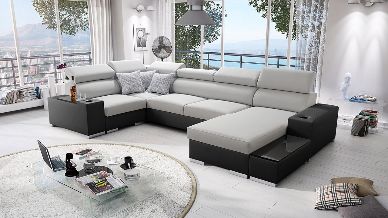 Prostorná sedací souprava ve tvaru U. Disponuje nastavitelnými opěrkami hlavy a praktickým odkládacím prostorem. Zaujme kvalitním provedením.