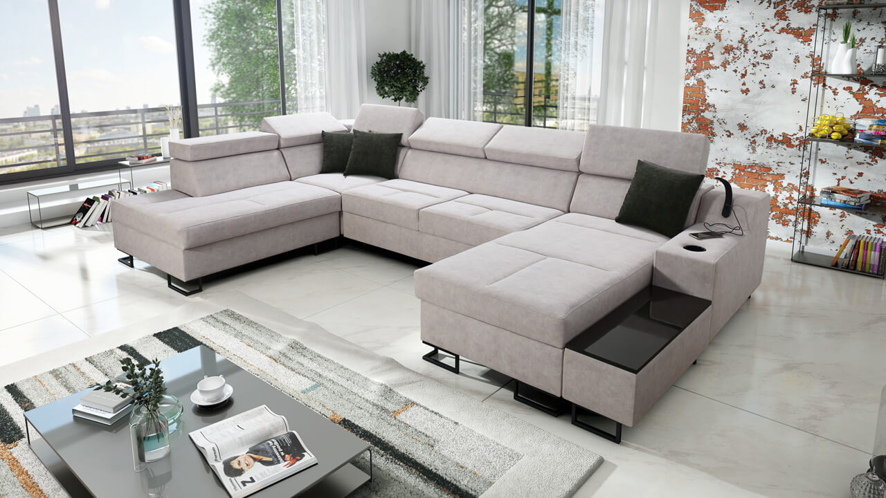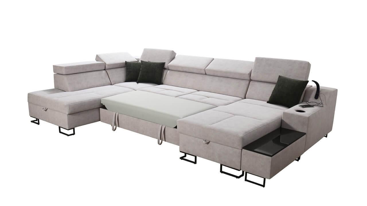 Tato účková sedačka vám poskytne vše, na co si vzpomenete. Má velký úložný prostor, množství místa k sezení a také dost velkou spací plochu po rozložení. Určitě oceníte i moderní funkce, jako jsou polohovatelné opěrky hlavy, USB nabíječka nebo vestavěná lampa. Typ a barvu potahu si můžete zkombinovat podle sebe.